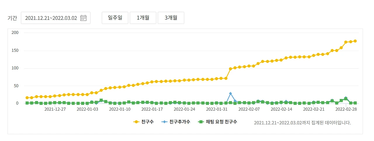 12월 21일 16명부터 시작한 '생활멘토' 채널은 3월 3일 177명이 되었다. (11배 상승!)