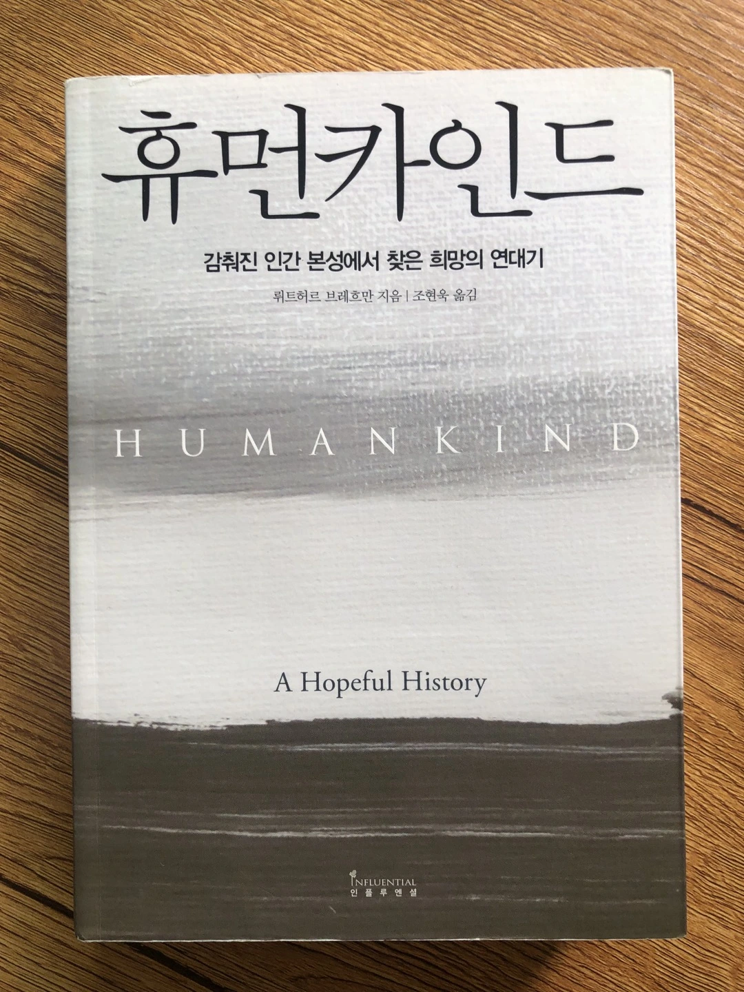 휴먼카인드라는 책을 읽었다. 휴먼카인드는 '인간'이라는 존재에 대해서 우리가 색안경을 끼고 있음을 이야기한다. 우리 사회가, 우리의 모든 생활 환경이 색안경을 낀 채 구성되었음을 지적하는 책이다. 책을 읽다보면 작가의 노력이 느껴진다. 작가인 뤼트허르 브레흐만은 여러 차례나 중립적인 태도로 책을 쓰기 위해서 스스로 뺨을 때리고 있다. 그럼에도 그의 중심주장은 변하지 않았고, 그가 이 책을 이렇게 마쳤다는 것만으로도 인류에 대한 희망과 소망이 가득해지는 것 같다.