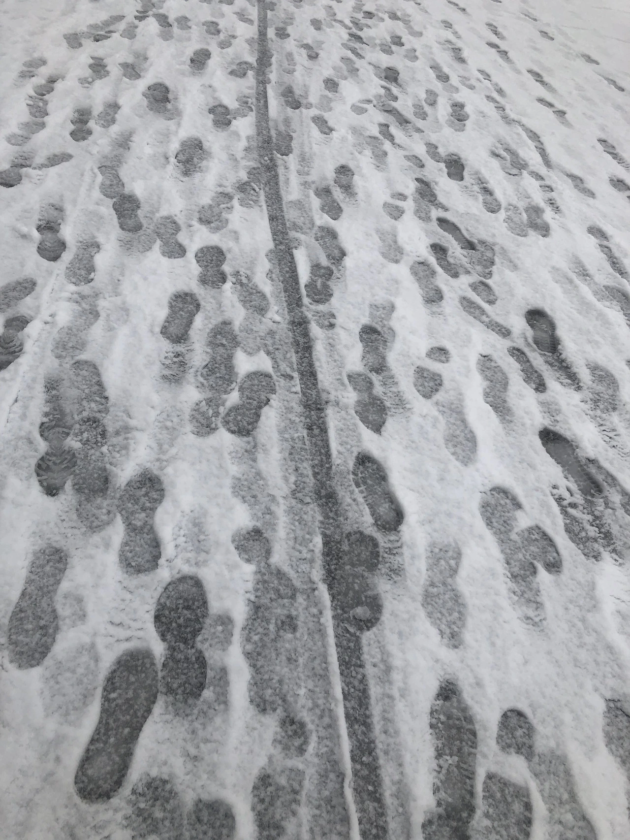 사람들이 눈 속에 발자국으로 길을 냈다.