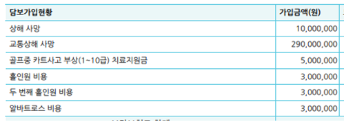 추가로 카트 사고 부상 정도만 (보험료도 싸니까요) 넣은 설계를 합니다.