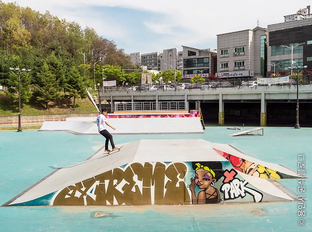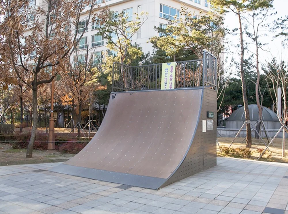 · 동대문 훈련원공원과 함께 서울의 대표적인 스케이트보드 스팟으로 야간조명이 밝아 밤에도 보딩을 즐길 수 있음