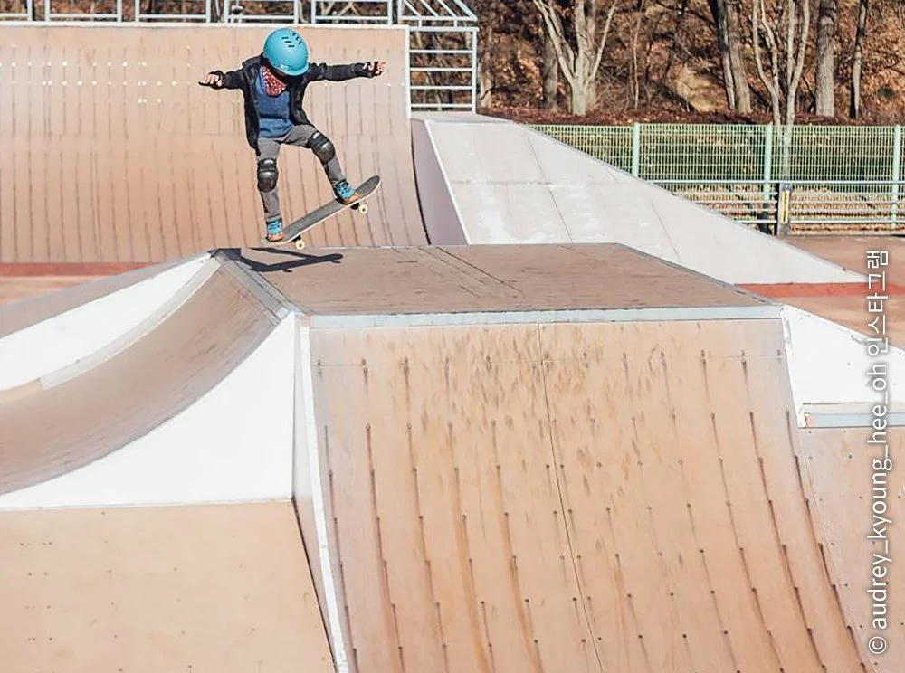 · 헬맷과 무릎보호대를 빌릴 수 있으며 대형 기물이 많고 초급, 중급, 상급 등급별 난이도에 맞는 기물 구비