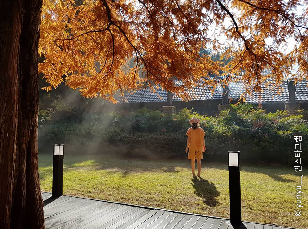 · 소금 황토방, 불한증막에서 땀 뺀 후 휴게실에서 가을 경치 보며 식혜에 구운 계란 한 입
