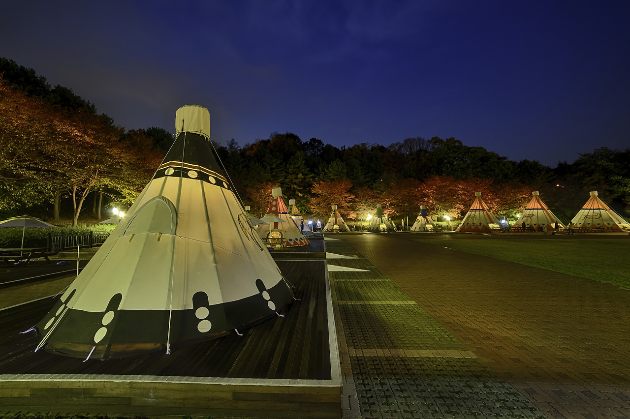 도심 속 자연을 즐길 수 있는 워커힐의 '캠핑인더시티'. 아차산의 숲 옆에서 한강을 내려다보며 낭만적인 캠핑을 즐길 수 있다. 알록달록 티피 텐트는 감성 캠핑의 필수 아이템, 내부에는 빈백과 빔프로젝터가 설치되어 영화를 감상할 수 있다. 개별 바비큐장에서는 최고급 해산물과 바비큐 요리를 제공한다.