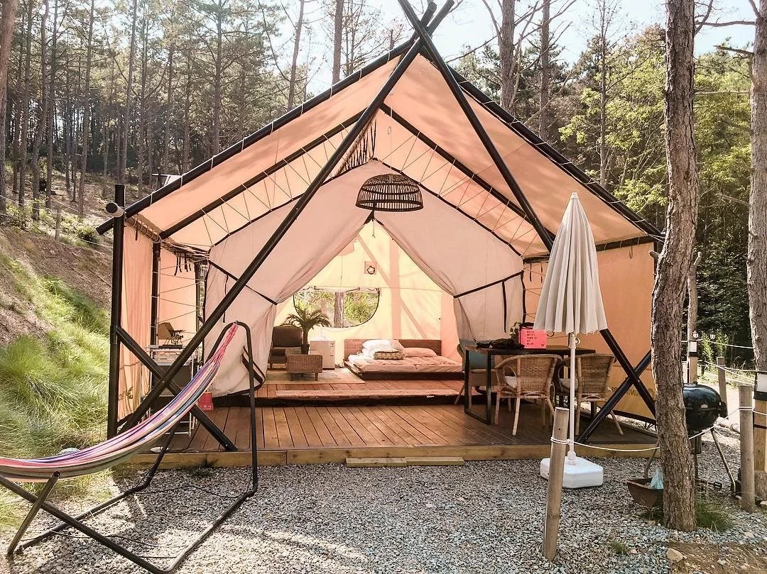 울창한 소나무 숲 속에 위치한 영흥도 블랙트리. 영흥대교를 통해 쉽게 접근할 수 있어 글램핑애호가들에게 사랑 받는 곳이다. 아늑한 침대와 깨끗한 침구는 기본, 몸만 가면 되는 쾌적함이 최대 장점! 텐트 앞 해먹에서 솔향기를 맡으며 멍 때리거나 숲 속 오솔길을 따라 산책을 즐겨보자.