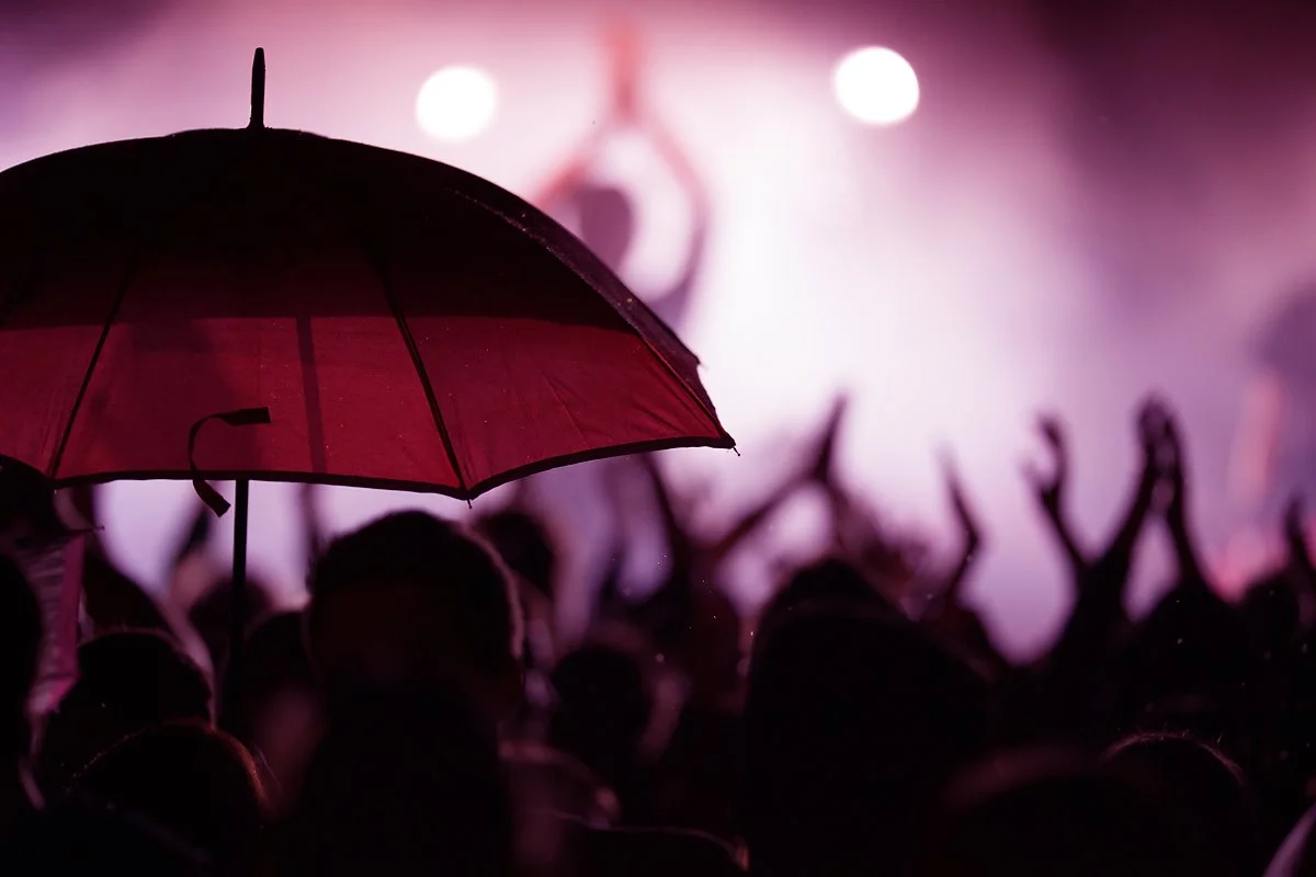▶ 우산이나 양산을 쓰고 공연을 보면 안전과 시야를 방해할 수 있어요. 스튜핏!