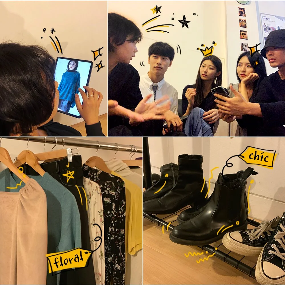 이후 우리가 찾은 곳은 저렴한 패션 아이템의 성지라 불리는 고속버스터미널 지하상가, 고터몰. 각 팀에게 10만원이라는 비용이 주어졌다. 한정된 비용으로 하는 쇼핑은 비슷한 아이템 비교와 흥정의 연속이란 걸 깨닫는 시간이었다. 무엇보다 실제 가격이 저렴한 아이템들이었기에, 저렴해 보이지 않는 아이템을 선택하는 일이 관건이었다. 물론 그 속에서 얻은 깨알 같은 팁도 있었다. 재미있는 점은 스타일 메이크 오버를 진행하는 과정에서 자연스레 우리가 평소 선호하는 스타일이 투영된다는 것이었다. 우리가 선호하는 스타일이 그저 우리의 취향은 아닐까. 그게 진짜 하진님에게 어울리는 스타일일까. 고민은 꼬리의 꼬리를 물었다.