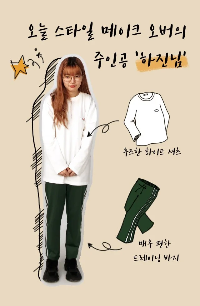 우리를 찾아온 첫 스타일 메이크 오버의 주인공은 같은 기수 LIFEPLUS 앰배서더로 활동 중인 스포츠팀 하진님이었다. 평소 스타일링에 관심이 많아 이것저것 다양한 스타일을 시도했지만 썩 마음에 드는 방향성을 찾지 못했다는 그녀. 스타일 유목민 생활에 지친 그녀의 선택은 주로 트레이닝복을 향했다. 평소 자전거 타는 걸 즐기는 만큼 주로 활동성에 초점을 맞췄던 탓이다.