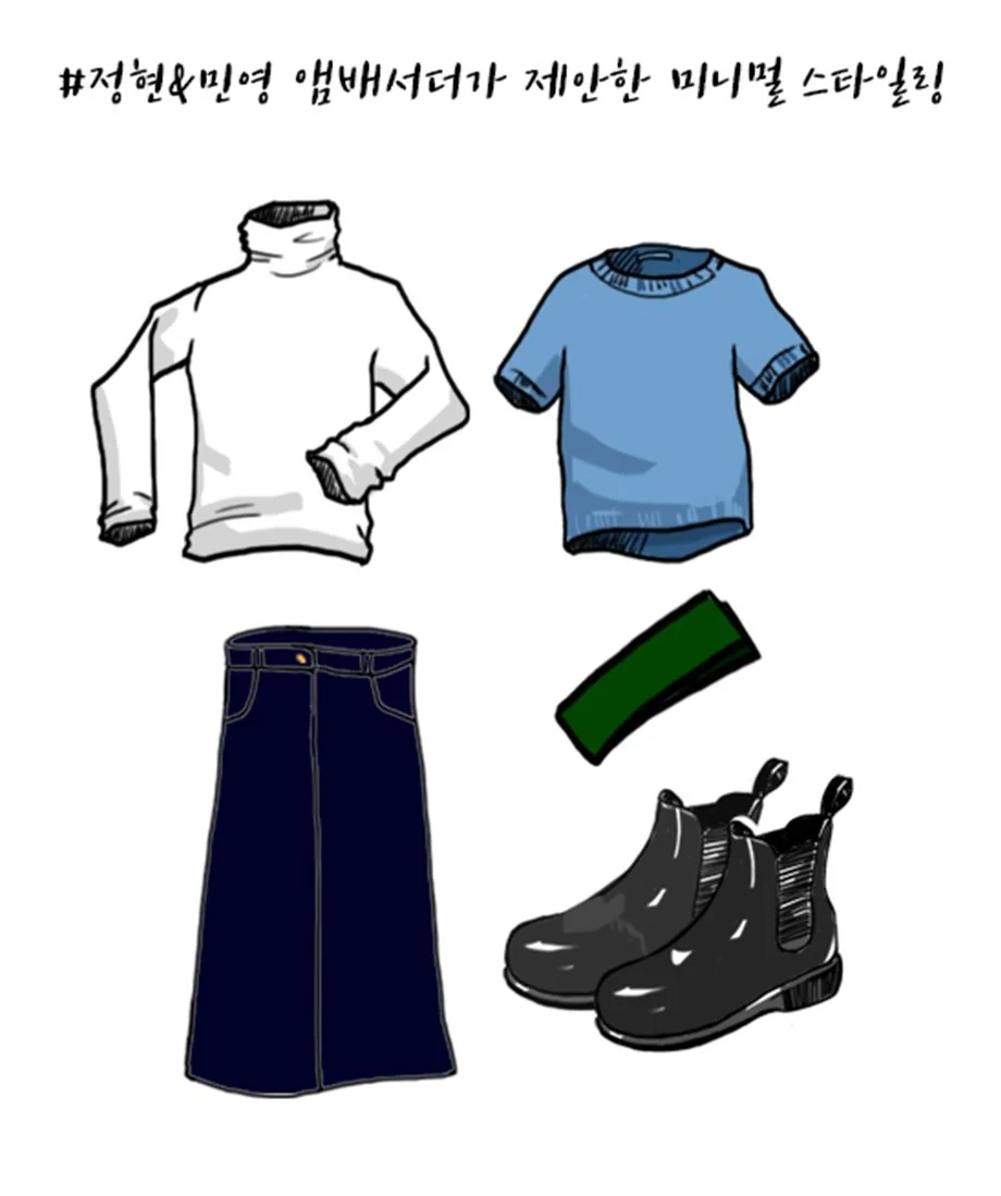 “내 이미지와 잘 매칭이 되지 않는 아이템에 도전할 때 상반된 아이템을 함께 활용해보자. 가령 밀리터리같이 하드한 아이템을 단정한 로퍼와 매치했을 때 의외로 어울릴 수 있다” -민영