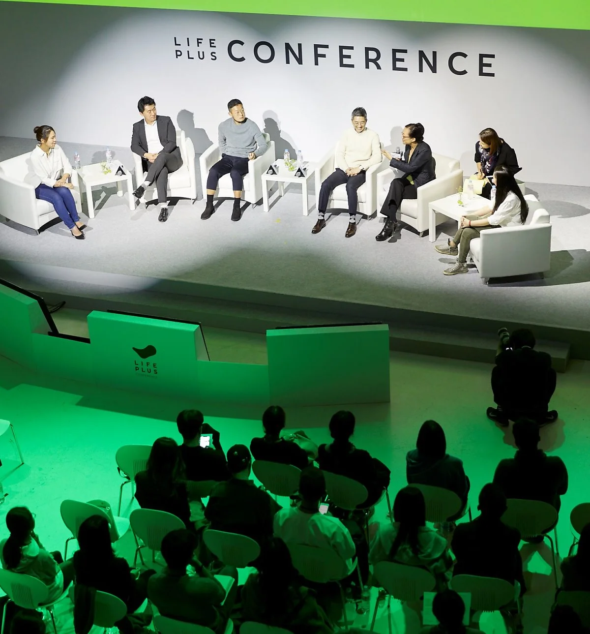 컨퍼런스는 LIFEPLUS 브랜드를 가장 농축적으로 경험할 수 있는 공간으로 꾸며졌습니다. 유기적으로 변화하며 성장하는 삶을 형상화한 LIFEPLUS의 심볼을 현장 곳곳에서 만나볼 수 있었습니다.