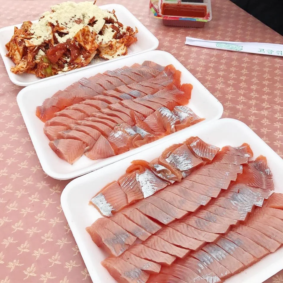· 강원도 칼바람에 꽁꽁 언 몸을 어묵 국물로 풀어주고 평창 특유의 쫄깃한 송어 맛보기