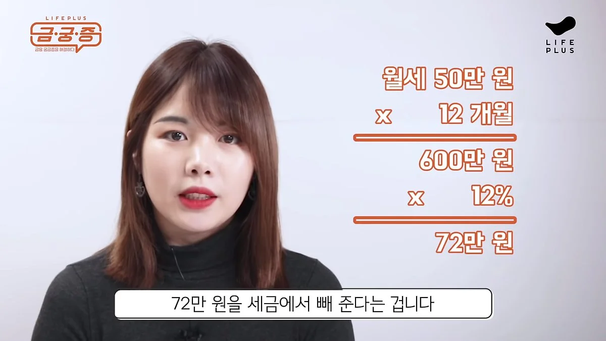 숨만 쉬어도 돈이 나가는 월세러를 위한 꿀팁! 연간 총 급여액이 7000만원 이하인 직장인이라면, 1년간 내왔던 월세의 12%에 해당하는 금액을 세금에서 빼주는데요, 총 월세액 750만원까지 인정된다고 하니 최대 90만원을 아낄 수 있습니다.