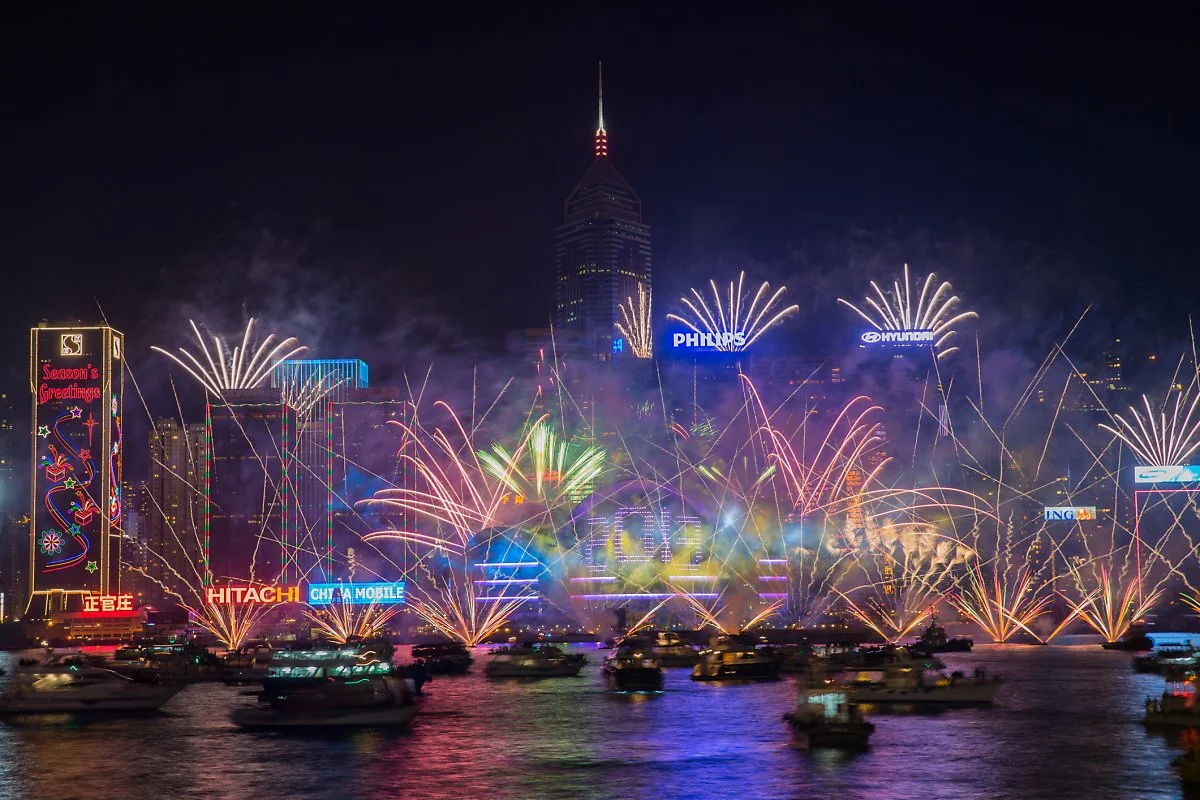 화려함으로 유명한 홍콩의 새해 카운트다운 불꽃놀이. 홍콩항 해상과 주변의 빌딩들을 이용한 거대한 스케일의 불꽃을 경험할 수 있다는 점이 특징. 불꽃놀이는 31일 밤 11시부터 시작되며 홍콩섬과 주룽반도의 해안가와 빅토리아 피크 등 주요 포인트는 많은 인파가 모이는 만큼 미리 이동해야 좋은 자리에서 구경할 수 있다. 각 빌딩의 전망 좋은 레스토랑과 카페, 수상 크루즈에서도 불꽃놀이를 즐길 수 있다.