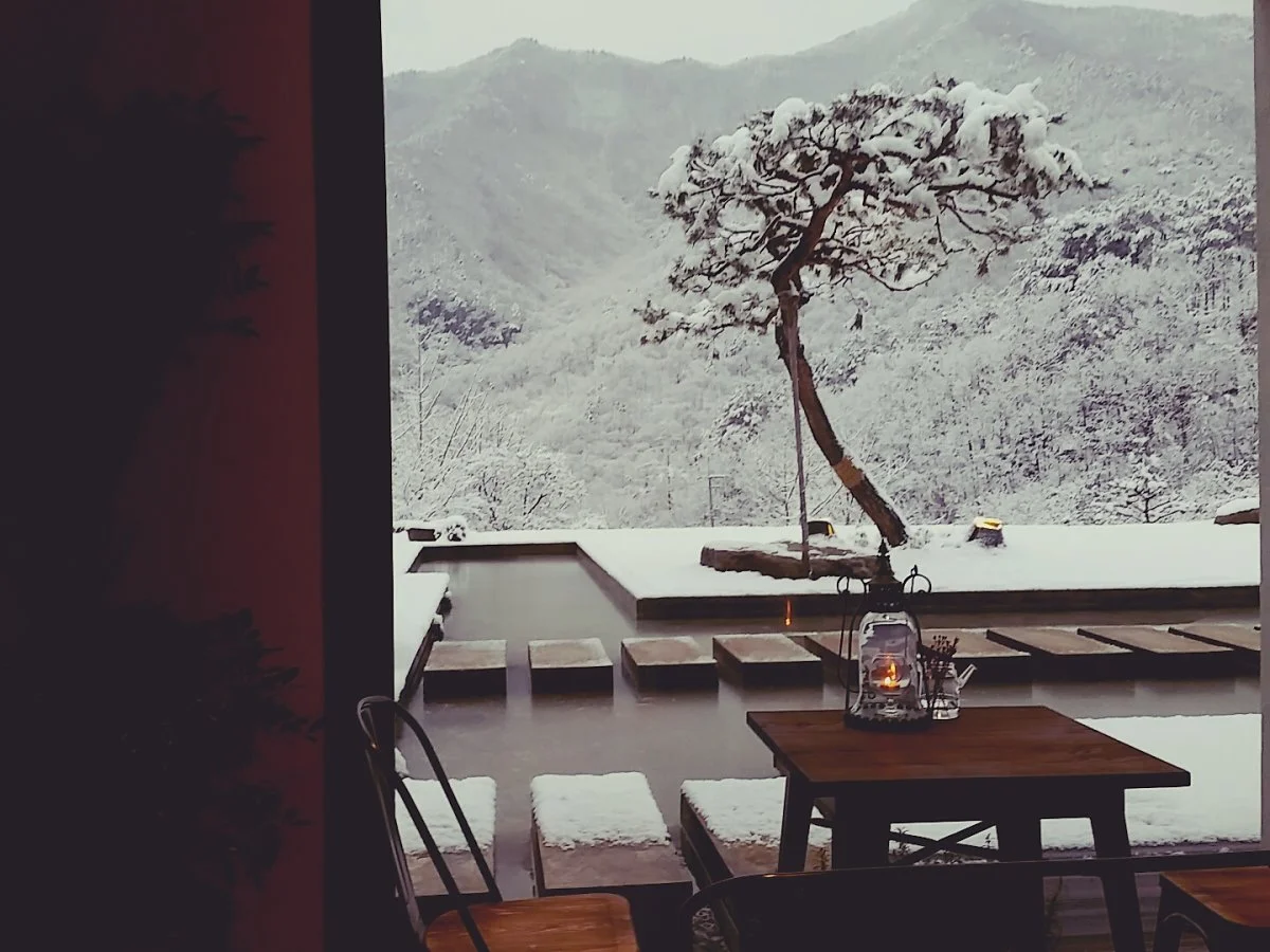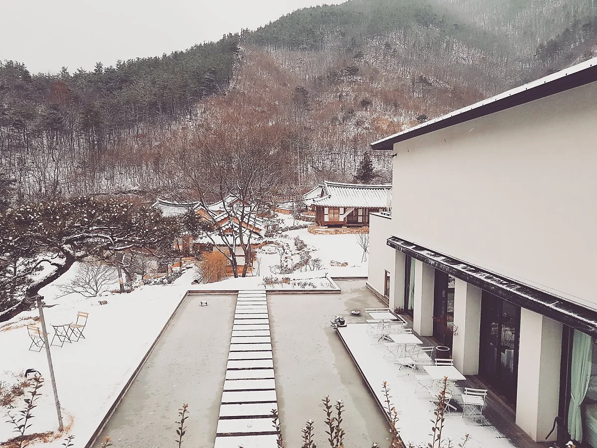 소양고택은 고창에 있던 100년 넘은 전통한옥을 옮겨만든 한옥스테이로 원래 가옥의 뼈대를 남기고 화장실 등의 시설은 현대적으로 바꿔 편리하고 아름다운 객실로 만들어냈어요. 한옥에서의 하룻밤을 보내고 새벽에 일어나 눈이 내린 풍경을 만나게 된다면 정말 감동적이겠죠? 숙박을 하지 않더라도 카페 두베를 통해 아름다운 한옥과 현대건축, 자연의 어우러짐을 즐길 수 있어요.