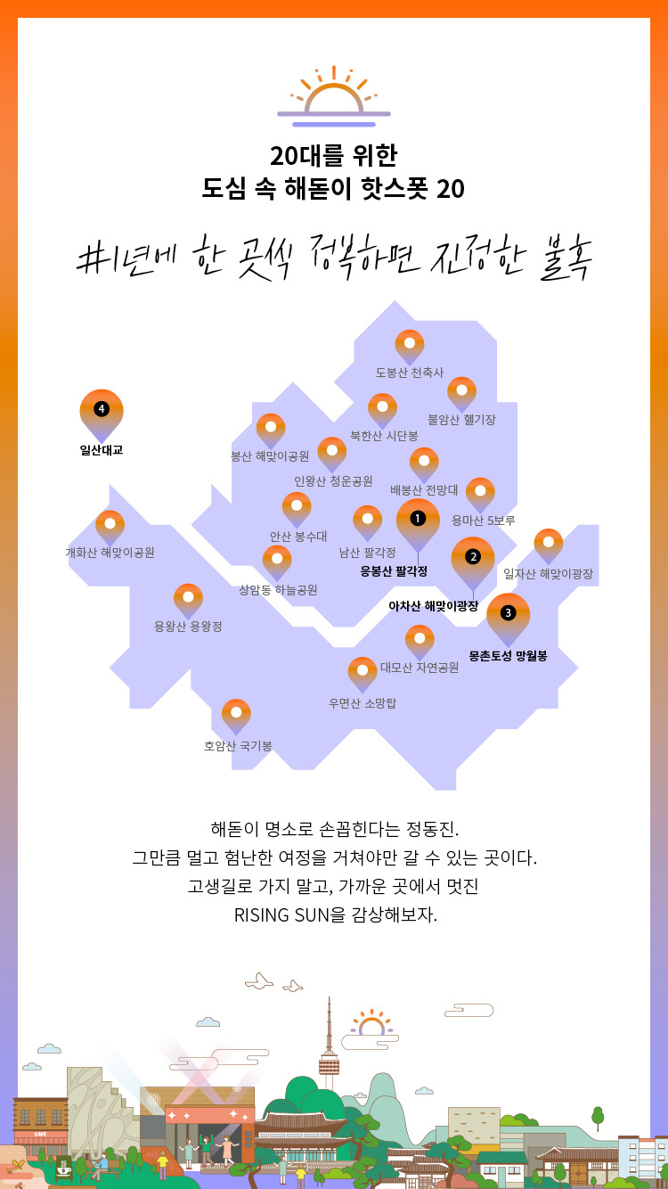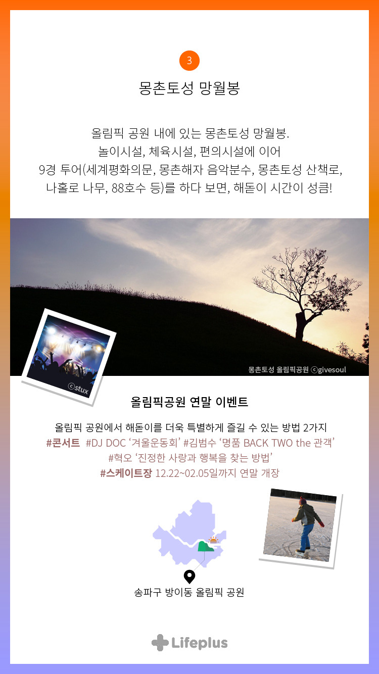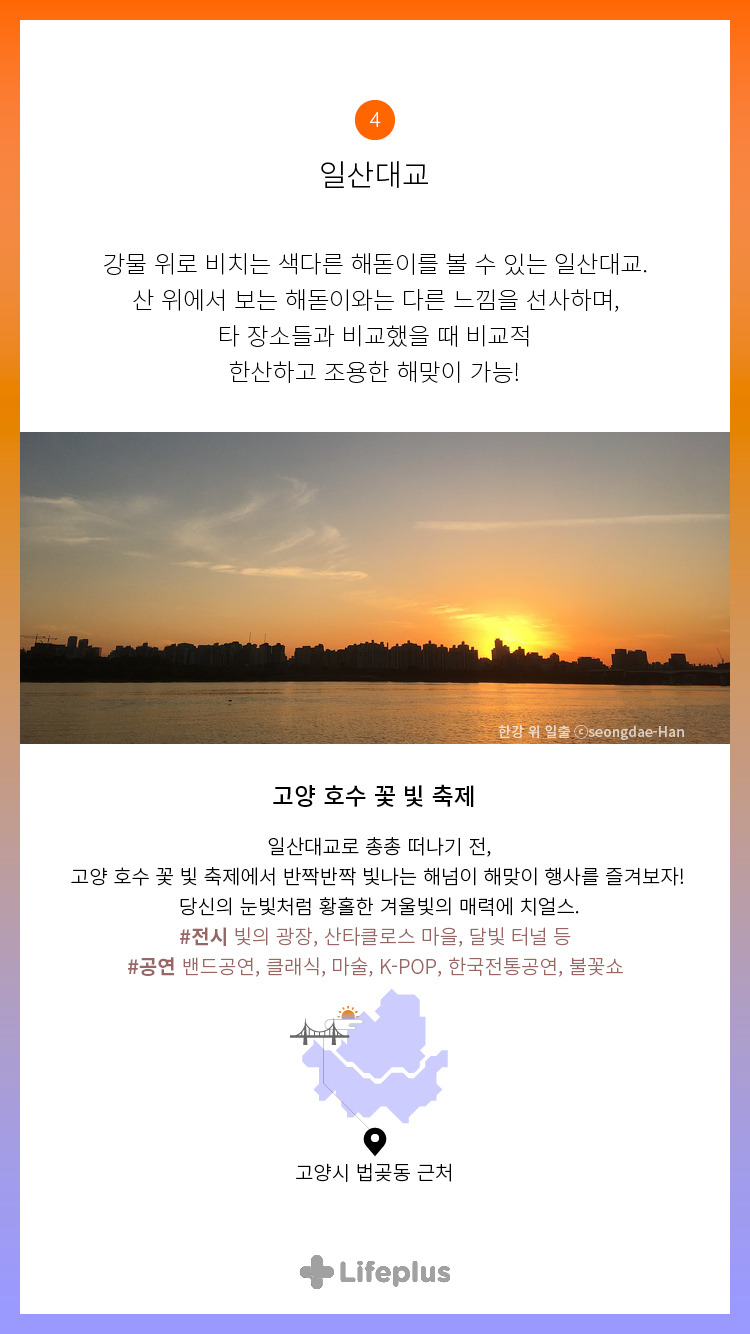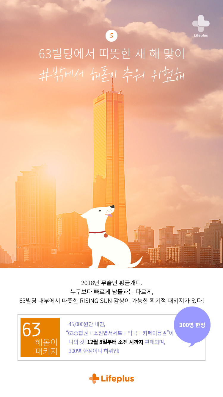 안전한 이불 속도 좋지만 떠오르는 붉은 해를 기다리면서 한 해 동안 간직할 추억을 만들어보는 건 어떨까요? Lifeplus가 소개해드리는 20곳의 서울 해돋이 핫스폿, 그리고 63빌딩에서의 따뜻한 해맞이 '63 해돋이 패키지'에 도전해보세요~