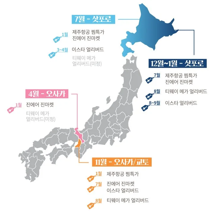 누구나 여행을 떠나기 전 여행 예산 비중의 5할은 항공권 구매이다. 항공권을 언제, 어디서 구매하느냐에 따라 여행을 싸게 갈 수도, 비싸게 갈 수도 있다. 한국인이라면 10명 중 8명이 다녀왔다고 하는 일본을 좀 더 아껴서 갔다 올 수 있도록 항공권 꿀 Tip을 준비했다!