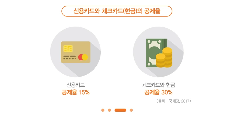 만약 이런 소비패턴을 바꾸기 어렵다면 소득이 높은 쪽의 카드를 사용하세요. 각자 명의로 사용할 경우에도 공제한도에 도달하지 못했다면 소득이 높은 배우자 명의의 신용카드·체크카드를 부부가 함께 사용하는 것이 좋습니다. 현금영수증 발행 시에도 소득이 높은 사람 명의로 받는 것이 유리해요!