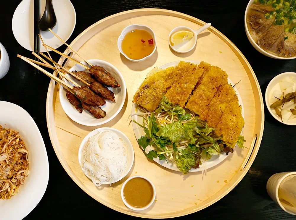 베트남식 부침개 반쎄오를 야채와 함께 라이스페이퍼에 돌돌 말아 소스에 찍어 먹으면 또 얼마나 맛있게요?