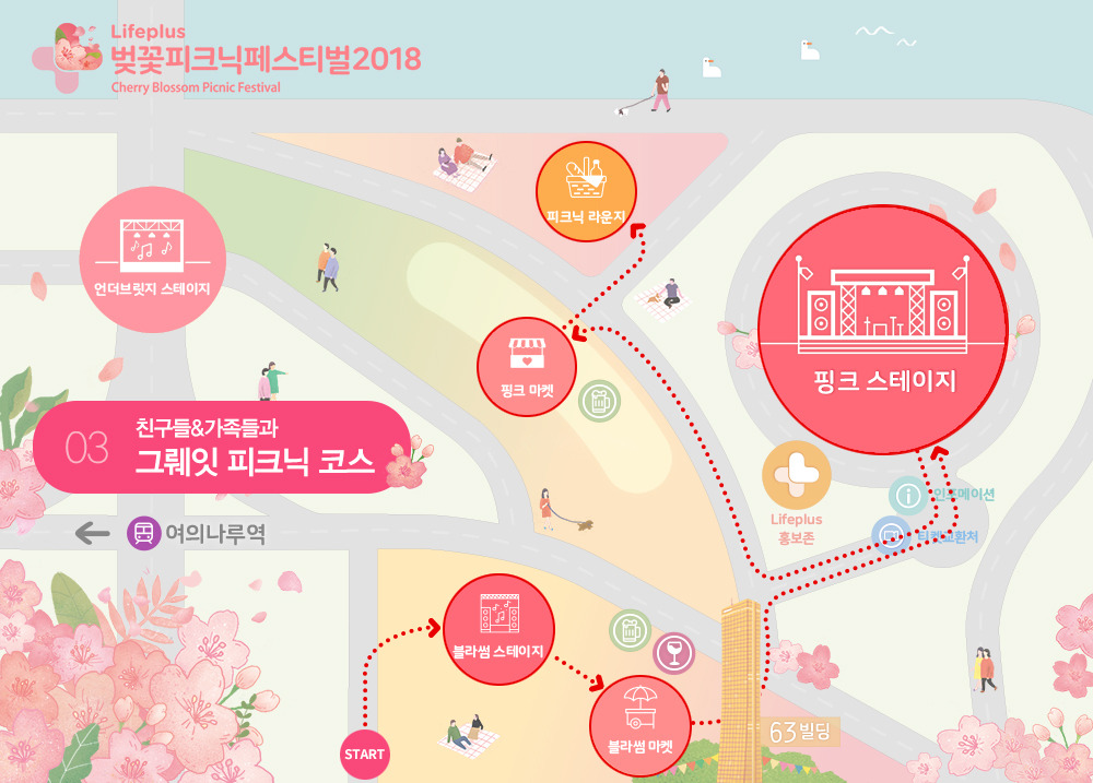 라이프플러스가 준비한 세가지 추천 코스만 기억해두시면 누구보다 제대로 페스티벌을 즐길 수 있을 거예요! 출발지점 따라, 취향 따라 골라서 따라만 오세요~
