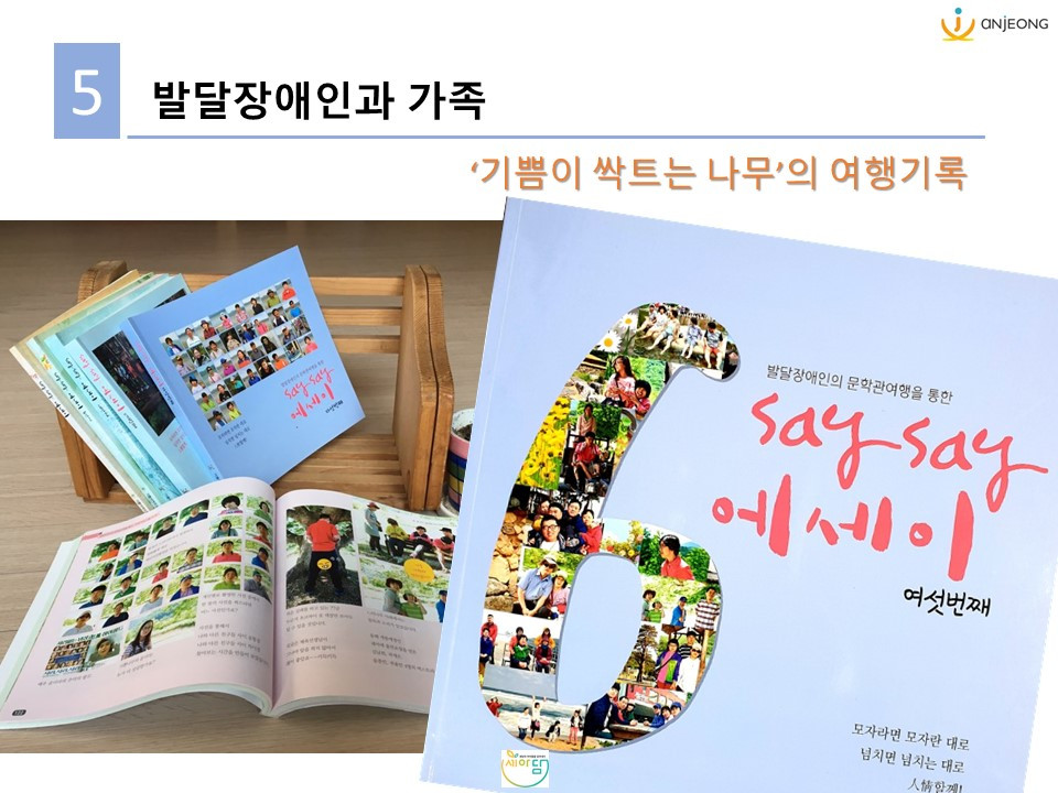 기쁨이 싹트는 나무는 서울 금천구에 위치해 있는 거주시설로 발달장애인의 문학관 여행이라는 주제로 계절마다 여행을 하며 일 년 4계절의 여행 내용을 꼼꼼한 사진 작업과 원장님의 재치 있는 글로 엮어서 'say say 에세이'라는 제목의 책으로 출판하고 있다. 이 글은 2018년의 여행기록인 일곱 번째 이야기 출판을 위해 쓴 애독자의 글이다.