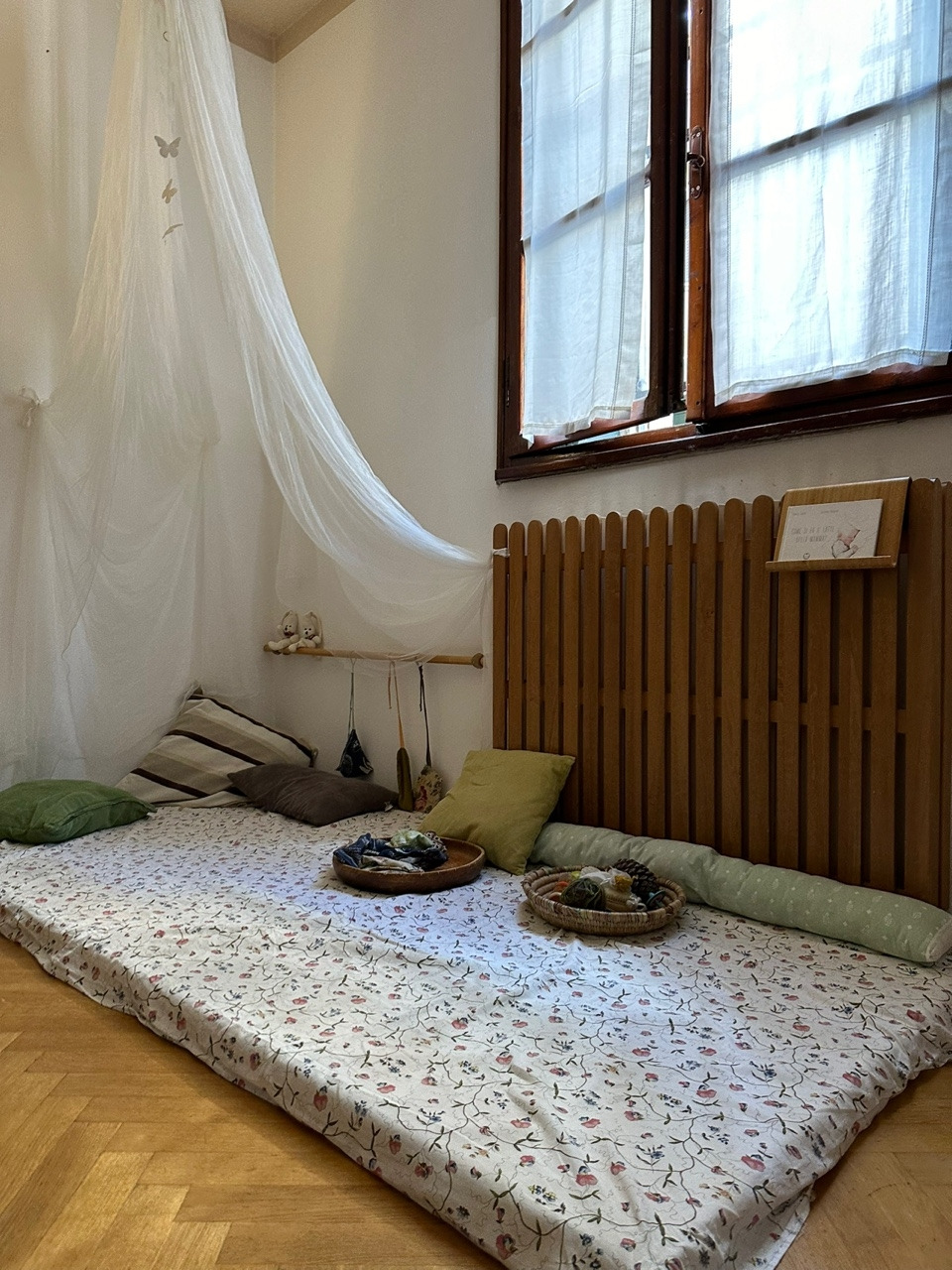 그러나 3일간 나는 알게 되었다. 어린이집 하루 내내 일과를 3일간 함께하며 많은 것을 알게 되었다. 솔이가 몇 시에 무엇을 하고 있을지 머릿속에 그릴 수 있었다. 그리고 이탈리아인들이 어린이들을 대하는 자세, 몬테소리 교육방침도 배웠다. 나는 애 셋 엄마라 내가 제일 많이 알 거라는 착각을 하고 갔는데 가보니 내가 제일 모르는 것 같았다. 같은 반 올리비아, 오로라의 엄마는 첫째 엄마들이라 그만큼 관심을 더 쏟는 때이고 그녀들이 좀 침착한 스타일이라서 그런지(내가 본 북부 이탈리아인들은 대부분 침착해 보인다) 정신없는 세 아이 엄마는 그녀들에게 많이 배웠다. 아마도 내가 이탈리아 어린이집이나 이곳 스타일 육아에 익숙지 않다는 것을 알았기 때문에 나를 배려하는 차원에서 많이 알려주기도 했다. 그리고 내가 좀 궁금한 게 많기도 했다. 아이들이 아침에 뭘 먹는지, 어떻게 자는지.. 등등 근데 지금 생각하면 그들은 그다지 궁금해하지 않았다. 어쩔 수 없는 ‘남의 집 애들은 어떻게 사나 궁금한’ 한국인 엄마의 모습일까? 아니면 새로운 나라에서의 새로운 방식에 궁금한 것일까? 둘 다인 것 같다.