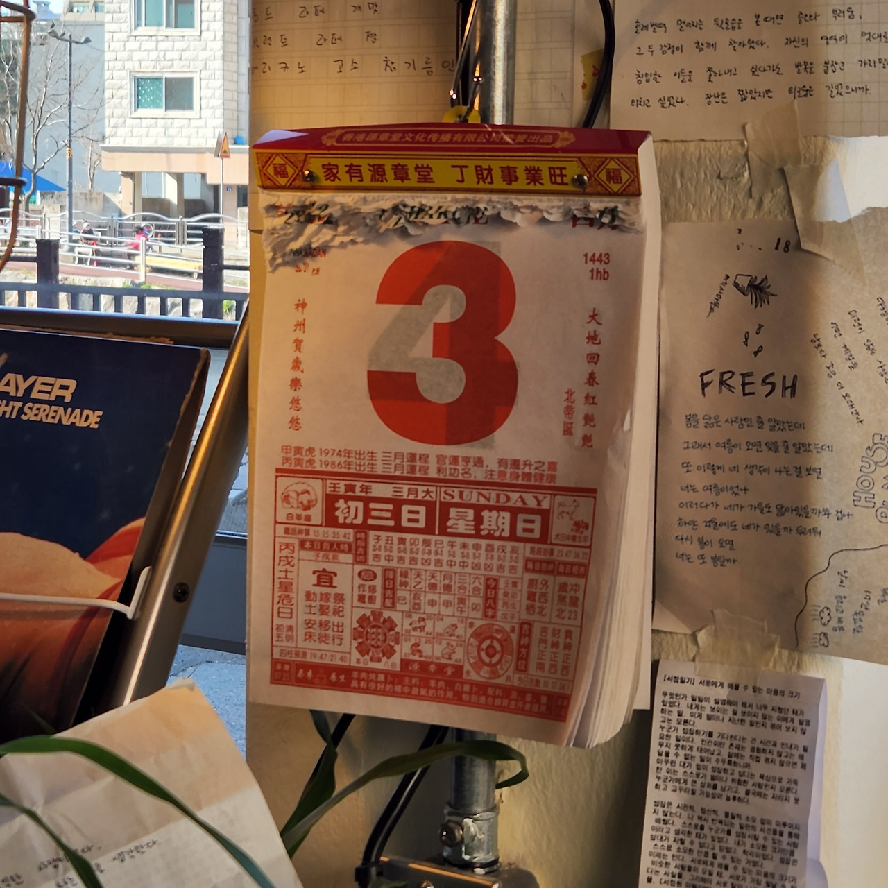 한 곳에 놓여있는 달력의 뜯어진 그 두께만큼 이 공간의 시간도, 올해의 시간도 흘러감을 느꼈다.