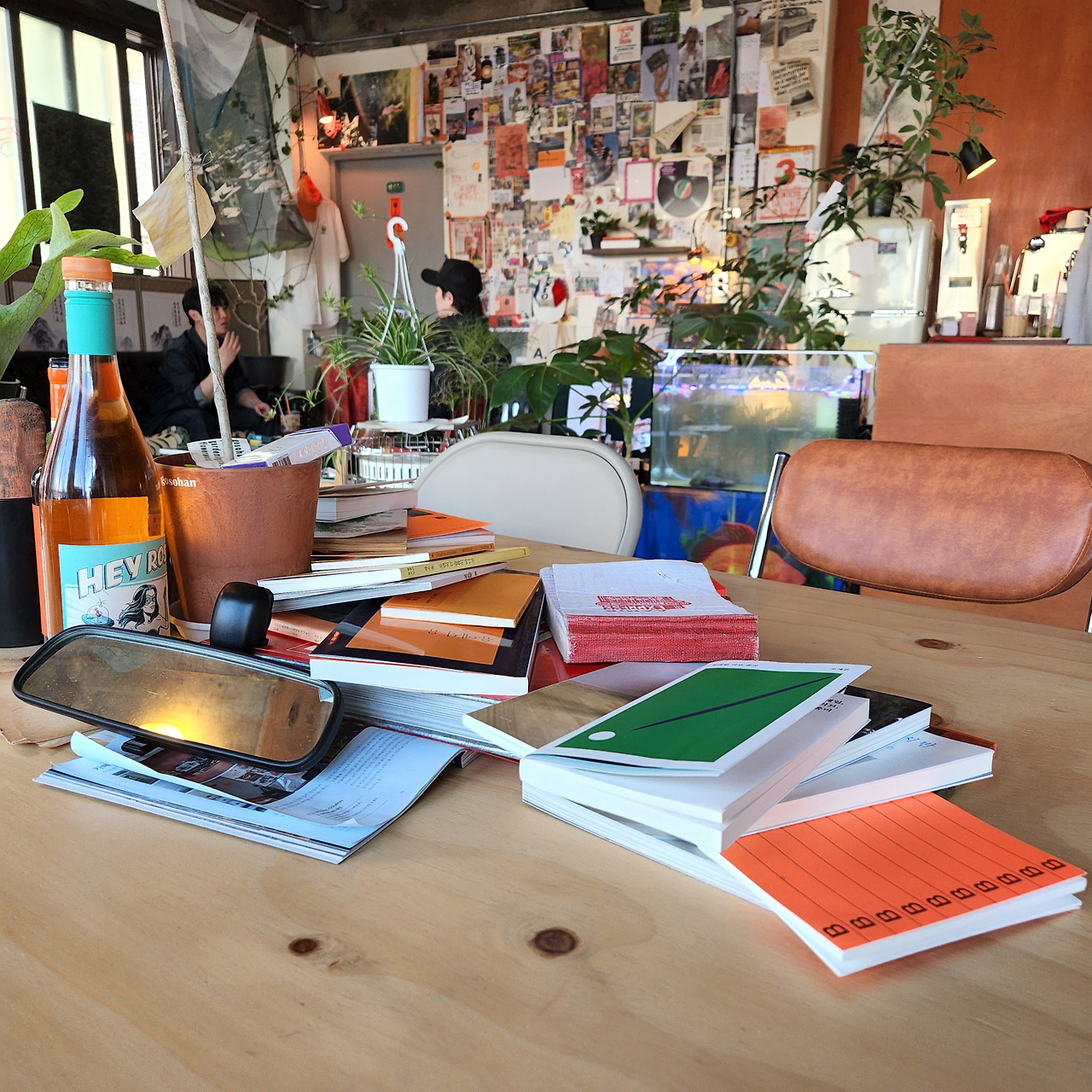 정갈하게 놓여있었다면 그냥 제목만 보고 넘어갔을 텐데, 마치 나의 집에 있는 책들과 같이 편안히 쌓여있는 책들을 보니 나도 오히려 편하게 책들을 보고, 읽어 볼 수 있었다.