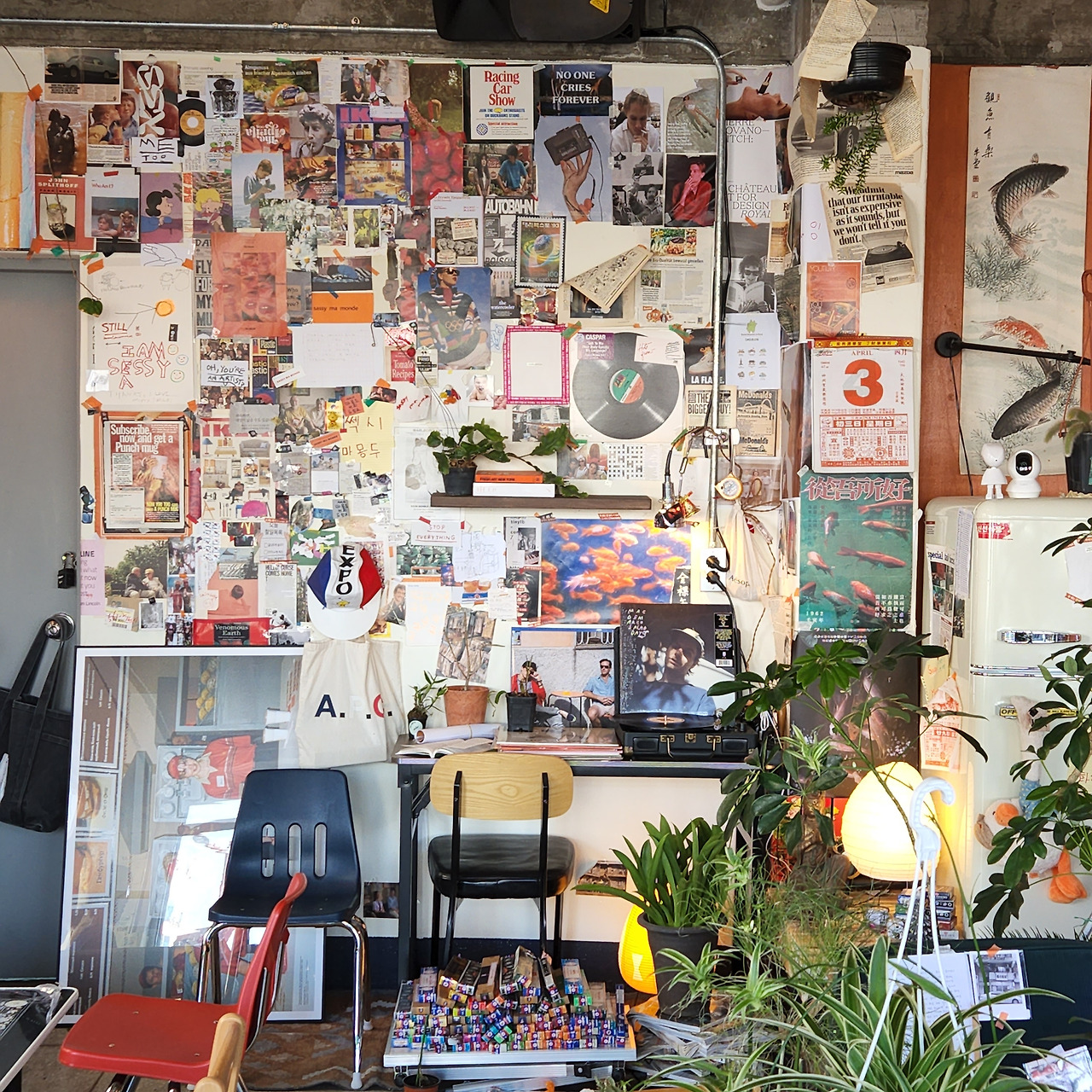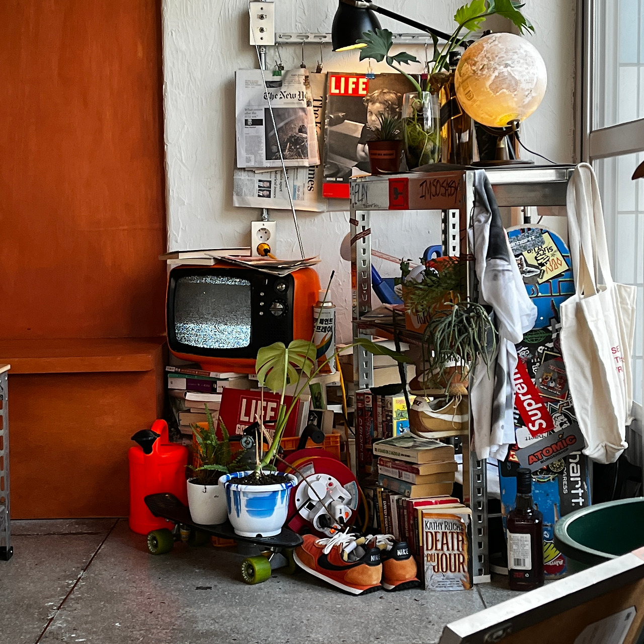 들어가면 15평 정도 한 공간이 그의 취향을 담은 물건들로 가득차 있다.