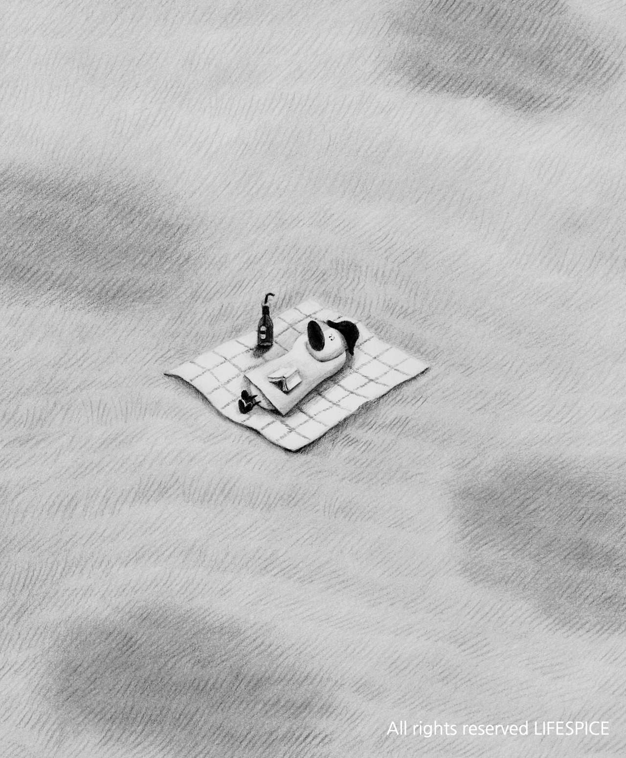 나는 따뜻한 바람이 불어오는 들판 가운데에 돗자리를 펴고 누워본다. 누운 자리 바로 옆, 손이 닿는 곳에는 잊지 않고 준비해 온 시원한 음료수도 꺼내두었다. 바쁘다는 핑계로 미뤄두었던 책을 오늘만큼은 꼭 읽어보리라 펼쳐 들었지만, 바람결에 흔들리는 풀들이 서로 부딪히며 내는 반짝이는 소리에 책은 또다시 덮어 두고 말았다. 따뜻한 바람은 구름을 싣고 들판을 넘고 내 이마를 넘어 빠르게 지나간다.
