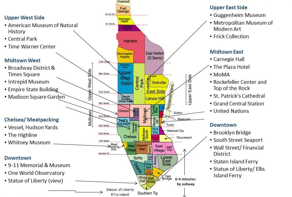 <시애틀의 잠 못 이루는 밤> 영화가 생각나는 엠파이어 스테이트 빌딩 (Empire State Building), 맨해튼과 브루클린을 연결하는 브루클린 브리지 (Brooklyn Bridge)와 낭만이 흐르는 포토스팟 DUMBO(Down Under the Manhattan Bridge Overpass), 중학교 때 영어 교과서로 처음 만난 센트럴 파크 (Central Park), 뮤지컬의 성지 브로드웨이 (Broadway), 왠지 무서운 일만 생길 것 같은 할렘 (Harlem) 등 앞으로 뉴욕에서 만나게 될 여러 랜드마크들(아래 지도 참고)에 대해서도 조금씩 더 풀어보도록 하겠다.