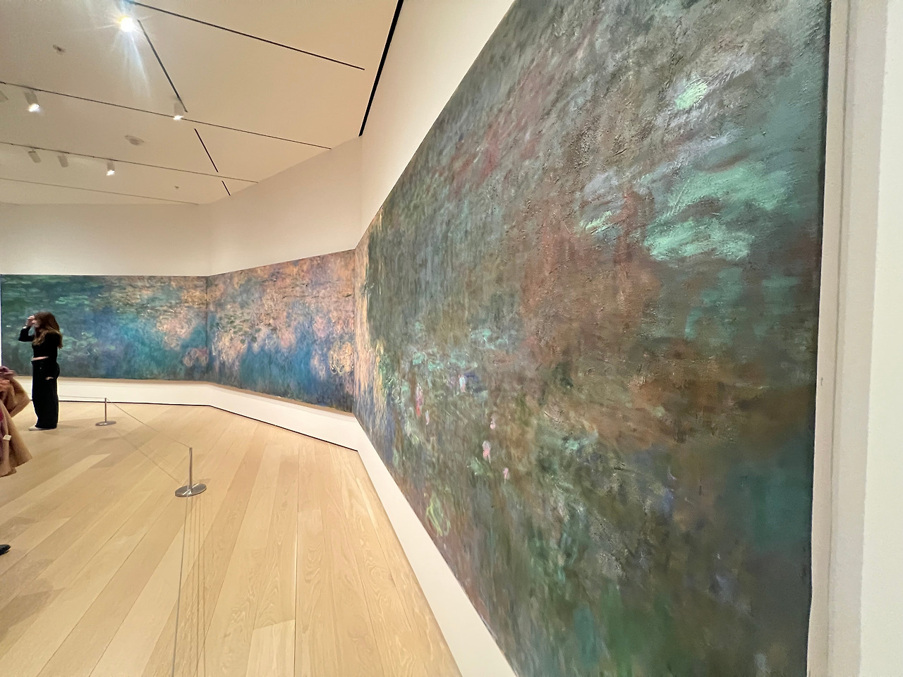 꺾어진 벽 두면을 길게 이은 초대형 작품인 모네의 <수련 Water Lilies>이 보인다. 크기와 분위기에 압도돼 작품 앞에 앉아 한참을 머물렀다. 프랑스 오랑주리 미술관에서 봤던 초대형 수련 패널에 버금가는 작품이다. 2미터가 넘는 대형 캔버스 작업을 완성하기까지 얼마나 오랜 시간이 필요했을까 잠시 상상해 본다. 작품 앞 긴 벤치에 앉아 좌측에서 우측으로 천천히 시선을 옮겨가며 작품을 관찰했다. 모네는 20년 이상 수련 연못을 그리며 빛과 색의 변화를 탐구하고, 자신의 예술적 경로를 발전시켜 나갔다. 수련 작품을 완성하는 과정에서 작품에 대한 많은 고민을 하게 되었고, 결국 그를 인상파에서 추상파로 변신시키는 분기점이 되었다고 한다. 그의 작품에 대한 깊은 고민과 번뇌가 느껴지는 지점이다.
