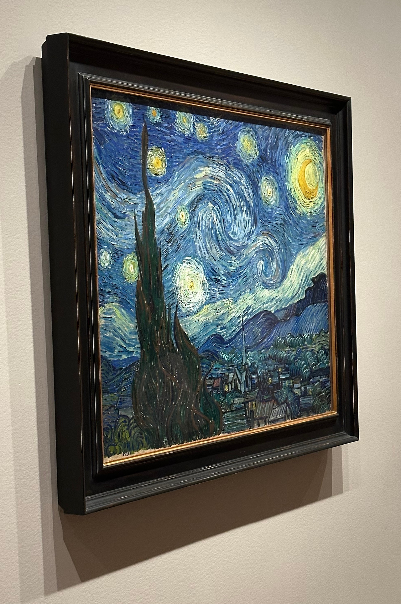 사실 <별이 빛나는 밤>은 내게 무척 익숙한 작품이다. 몇 해 전 이 작품으로 만들어진 2천 조각 퍼즐을 가족 프로젝트로 완성해 본 경험이 있기 때문이다. 밤을 새우며 작은 퍼즐 조각들을 하나하나 맞추느라 작품 구석구석 미세한 곳까지 관찰해야 했다. 확실히 그 어떤 작품보다 더 친숙하고 정이 갔다. 현실에서 마주한 작품은 생각보다 아담한 크기에, 몽환적인 밤하늘의 분위기가 더 강하게 느껴졌고, 고흐만의 아름다운 색감을 온전하게 담아내고 있었다.