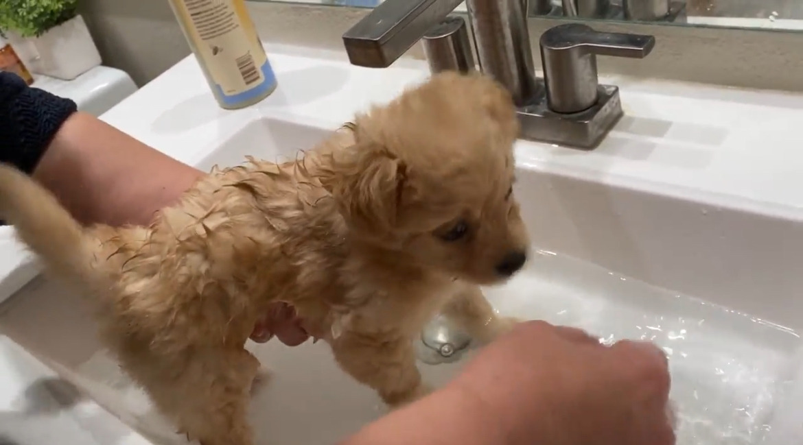 향긋한 향기가 나요. 아빠가 나를 두 손으로 꼭 안고, 엄마는 세면대에 따뜻한 물을 채우고 내 몸에 물을 살살 끼얹어 주어요. 코코넛 향이 나는 비누 거품을 내 온몸에 발라요. 나는 미끈미끈한 느낌이 싫어서 머리를 좌우로 세게 흔들었어요. 물이 온통 주변에 퍼졌고 누나는 "엄마야~"라고 소리치며 뒤로 물러나요.