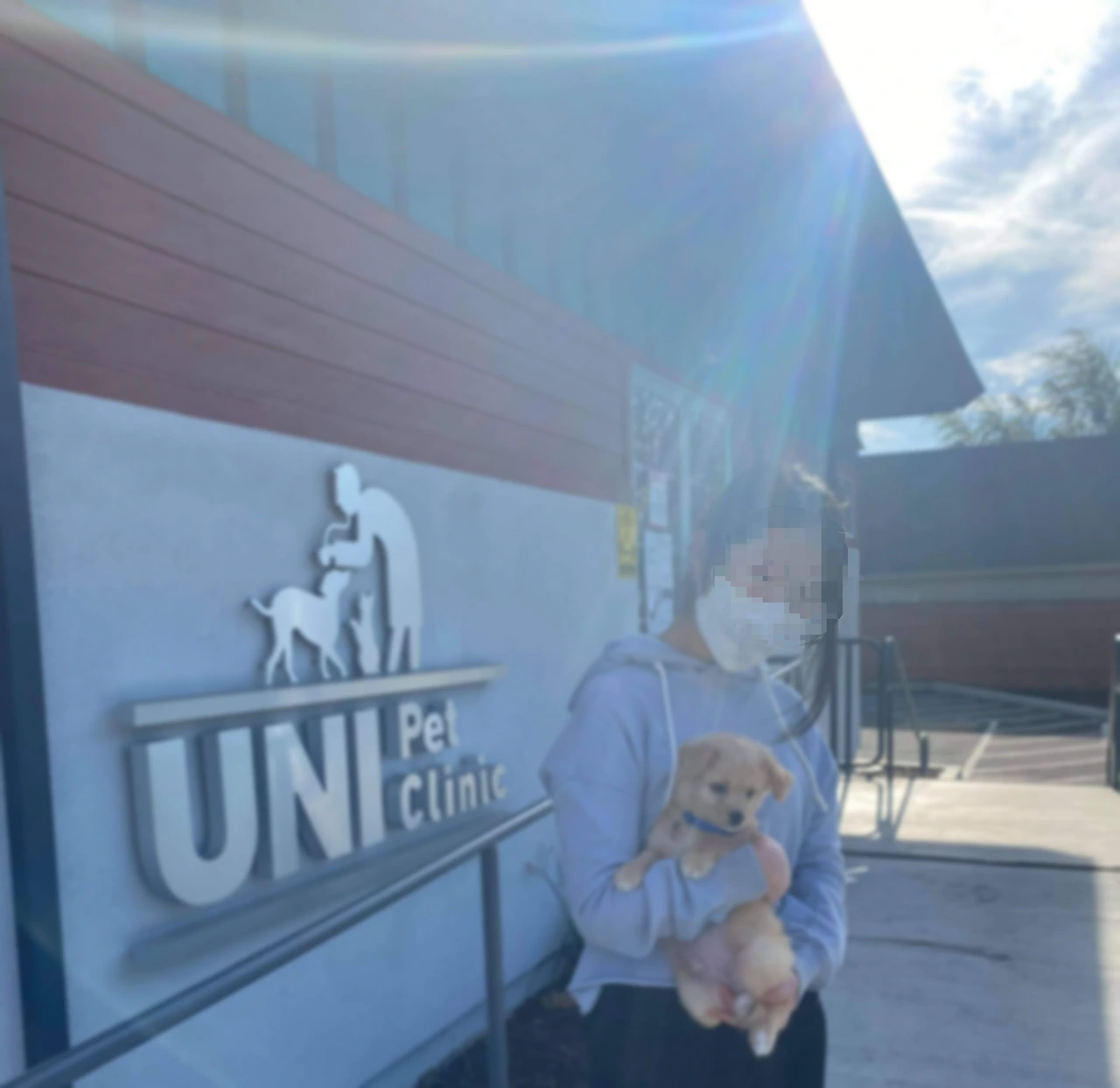 누나가 어디론가 전화를 해요. 엄마는 여기가 앞으로 내가 자주 다니게 될 동물병원이라고 했어요. 코로나라 비대면 진료를 하기 때문에 주차장에서 기다리면 간호사가 나와서 나를 데리고 들어간대요. 엄마랑 누나는 함께 안으로 못 들어간다고 하네요. 나는 무슨 말인지 몰라 어리둥절한 채로 엄마랑 누나랑 이야기를 들으며 누나 품에 안겨 차에서 기다렸어요.