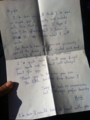 잠시 화장실 다녀온 사이에, 자리에 편지가 하나 있었다.