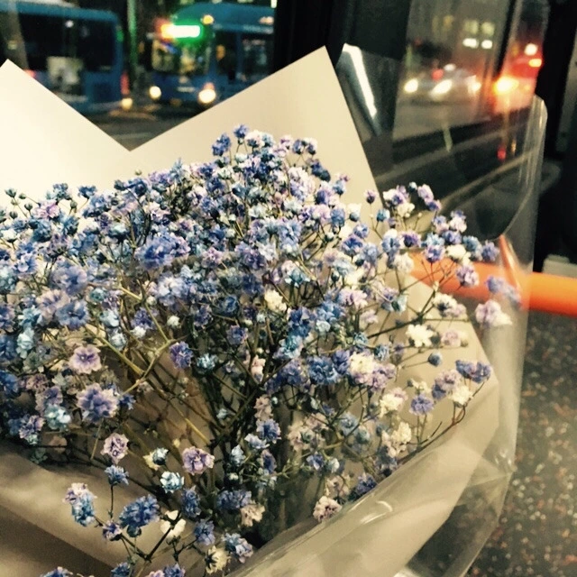 그래, 뭐, 이미 예쁘게 포장되어 있으니이거라도 사자 싶어 계산했다. 그리고 이미 포장되어 있는 보랏빛 안개꽃다발을 들고 나왔다. 프리지아같은 향은 없지만 보랏빛이 이쁘다. 바깥은 곧 해가 지려는지 노을이 붉게 물든 하늘도 예뻤다.