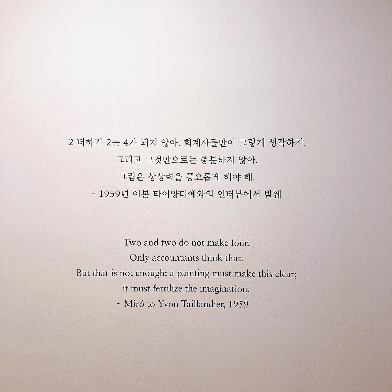 폴리글랏을 지향하는 나는 스페인 출신 작가의 그림을 보며 언젠가 스페인어 공부를 시작해서 스페인의 여러 문화를 경험해 보고 그것들을 좀 더 잘 이해하고 싶다는 생각이 들었다. 언어를 몰라도 이해할 수 있는 그림 같은 영역도 있지만 역시 나는 문자로 된 것에 끌리는 언어여행자임을 깨닫는다.
