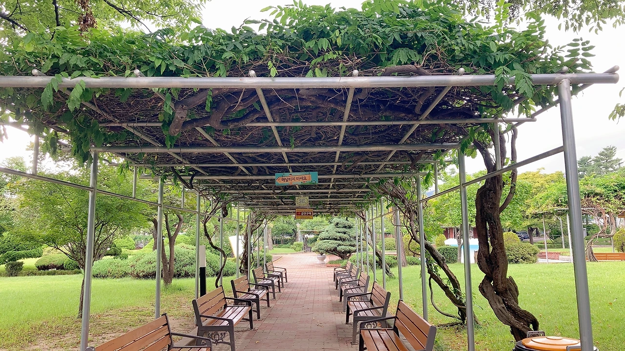 아쉬운 마음을 담아 한 바퀴 쓱 걸어 나온다. 비가 내렸다 말다 하지만 아주 폭우가 아닌 이상은 덩굴나무 아래로 가면 비를 피할 수 있다. 나이가 많아지면 우쭐할 만한 게 많이 없어지는 거 같다. 돈 많다고 우쭐하는 거 말고. 그런데 얘들아, 늬들은 이런 거 아니? 비 오면 등나무 밑에서 비를 피하는 거, 이런 게 바로 낭만이라고, 하며 속으로 우쭐하는 순간…!