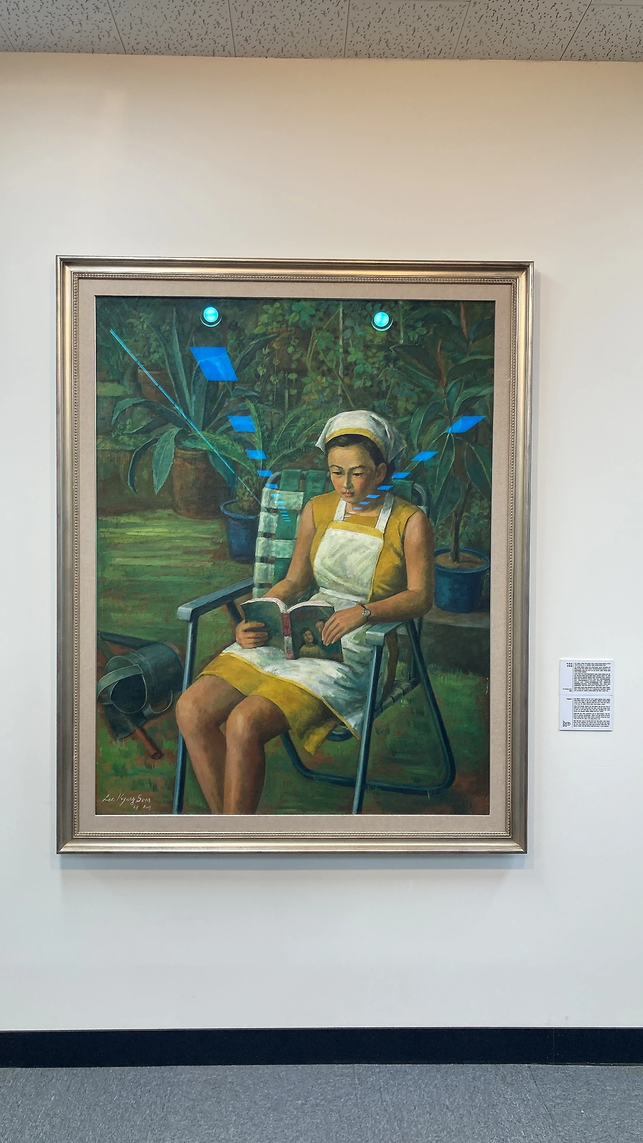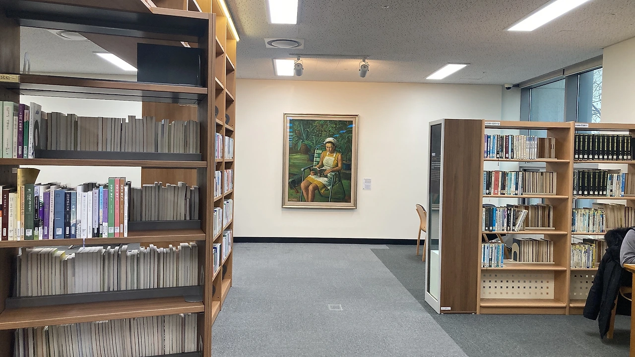서가 끝에 보니 책을 읽고 있는 여성의 그림이 걸려 있어서 자연스레 그쪽으로 발길이 향한다. '책을 읽는 여자는 위험하다'라는 책도 그렇고 유독 여성이 책을 읽는 이미지에 대한 그림은 많이 본 거 같다. 그런데 가만 생각해 보면 남자가 진지하게 앉아서 책을 읽고 있는 그림은 거의 못 본듯한 느낌이다. 이것 또한 나의 편견일까?