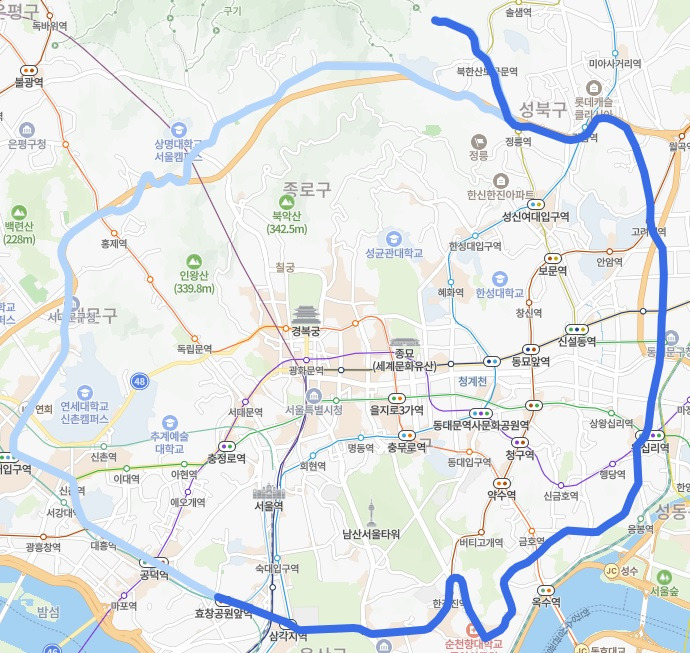 나에게 딱 맞는 서울 버스여행의 노선은 바로 이 110번이었다. 이걸로 정했다. 기본적으로는 노선을 다 타고 가면서 중간중간 내리기로 했다.