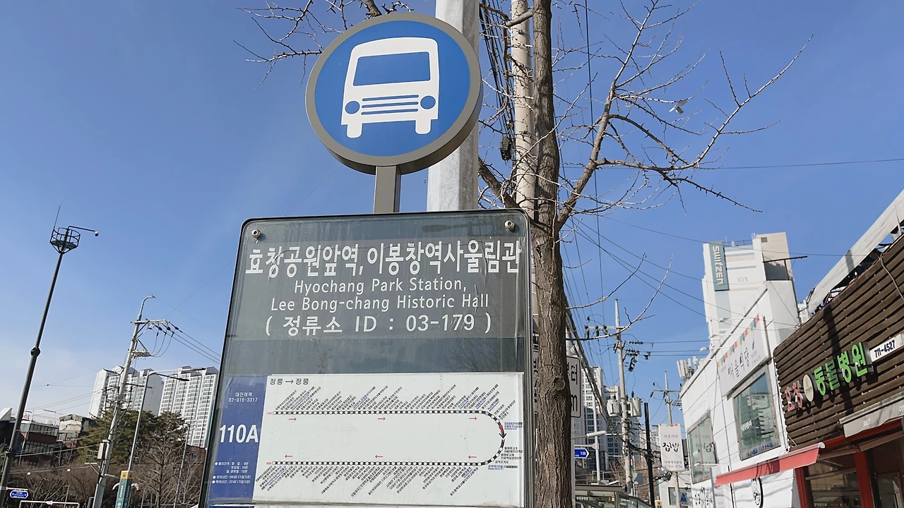 20여분을 달려 효창공원 앞역에서 내린다. 여기는 노선을 살펴보다 정류장명에 이름이 하나 더 붙어있었는데 그거보고 바로 이곳을 골랐다. 바로 이 버스정류장 명칭엔 '이봉창역사울림관'이라는 정류장명이 하나 더 붙어 있었기 때문이다. 근처에 이봉창의사 생가터가 있길래 이 자리에 박물관을 만든 것 같다.