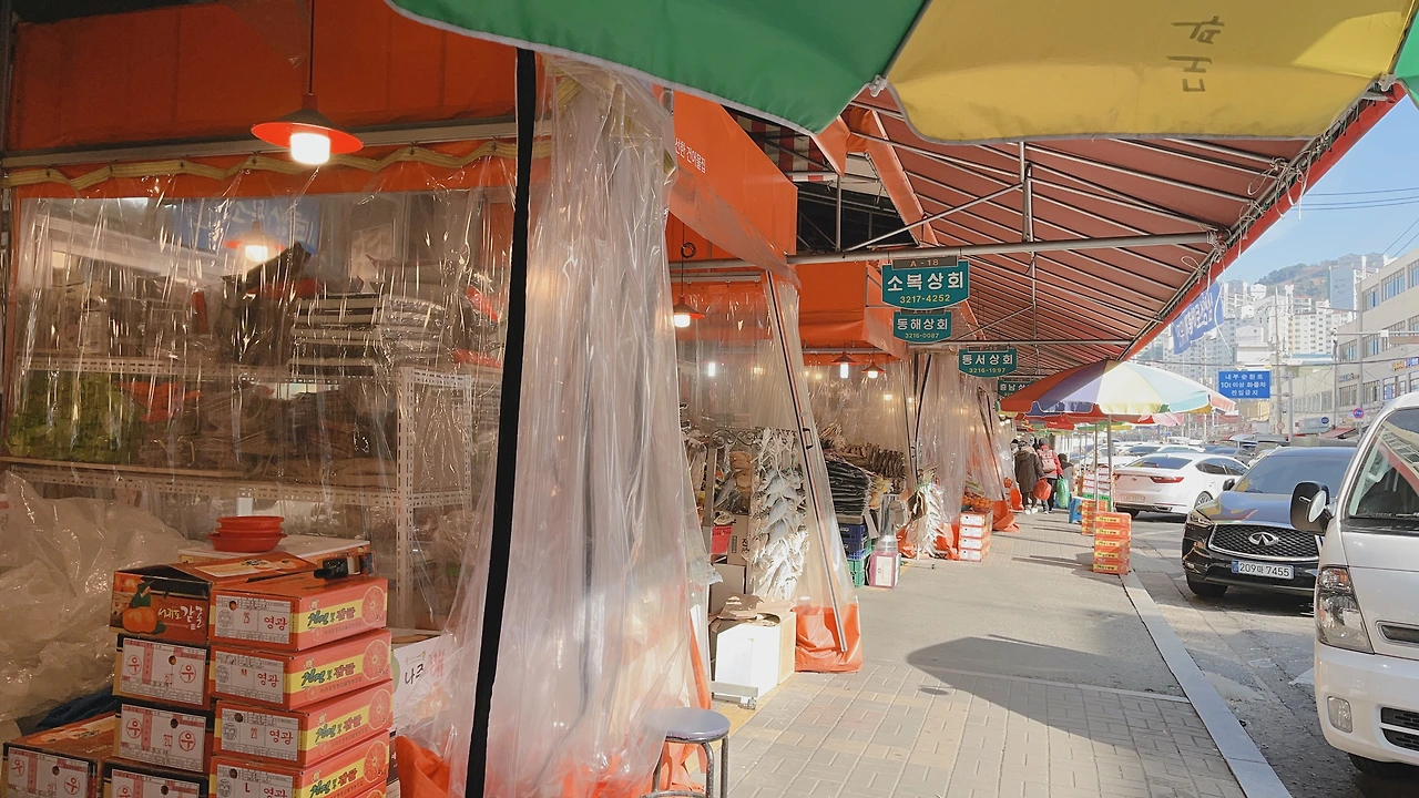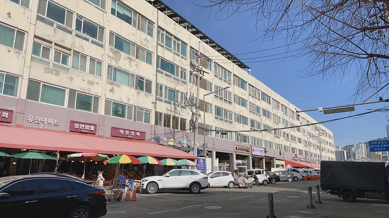 앞건물을 지나 건물을 돌아 뒤로 가니 아파트 입구도 나오고 시장 분위기가 난다. 영등포 청과시장 느낌. 아까 버스정류장에서 내려서도 건물 안으로 들어갈 수 있는데 굳이 들어가지는 않았다.