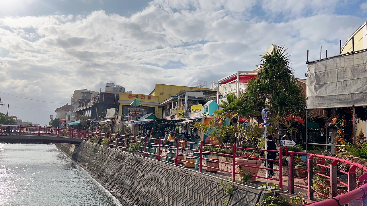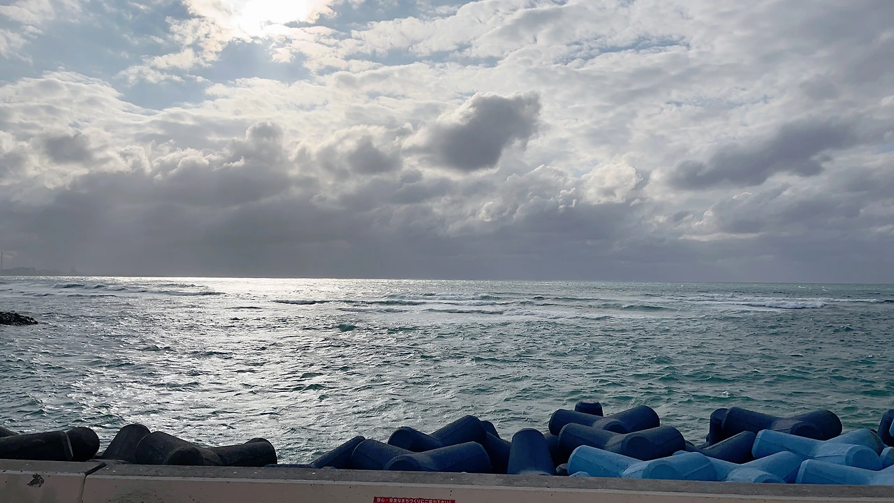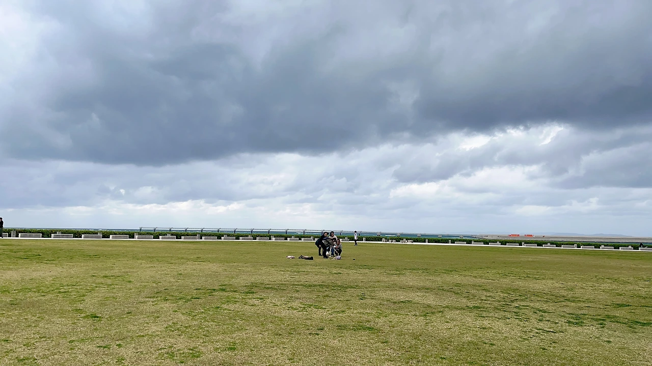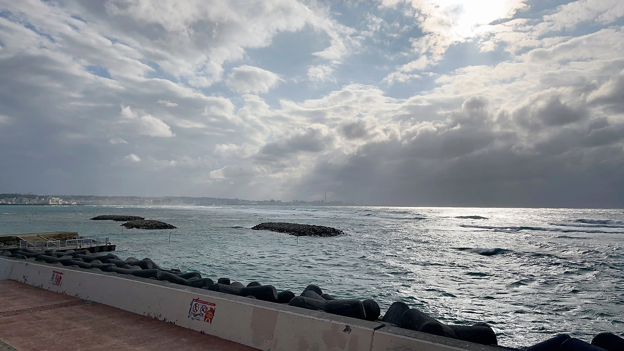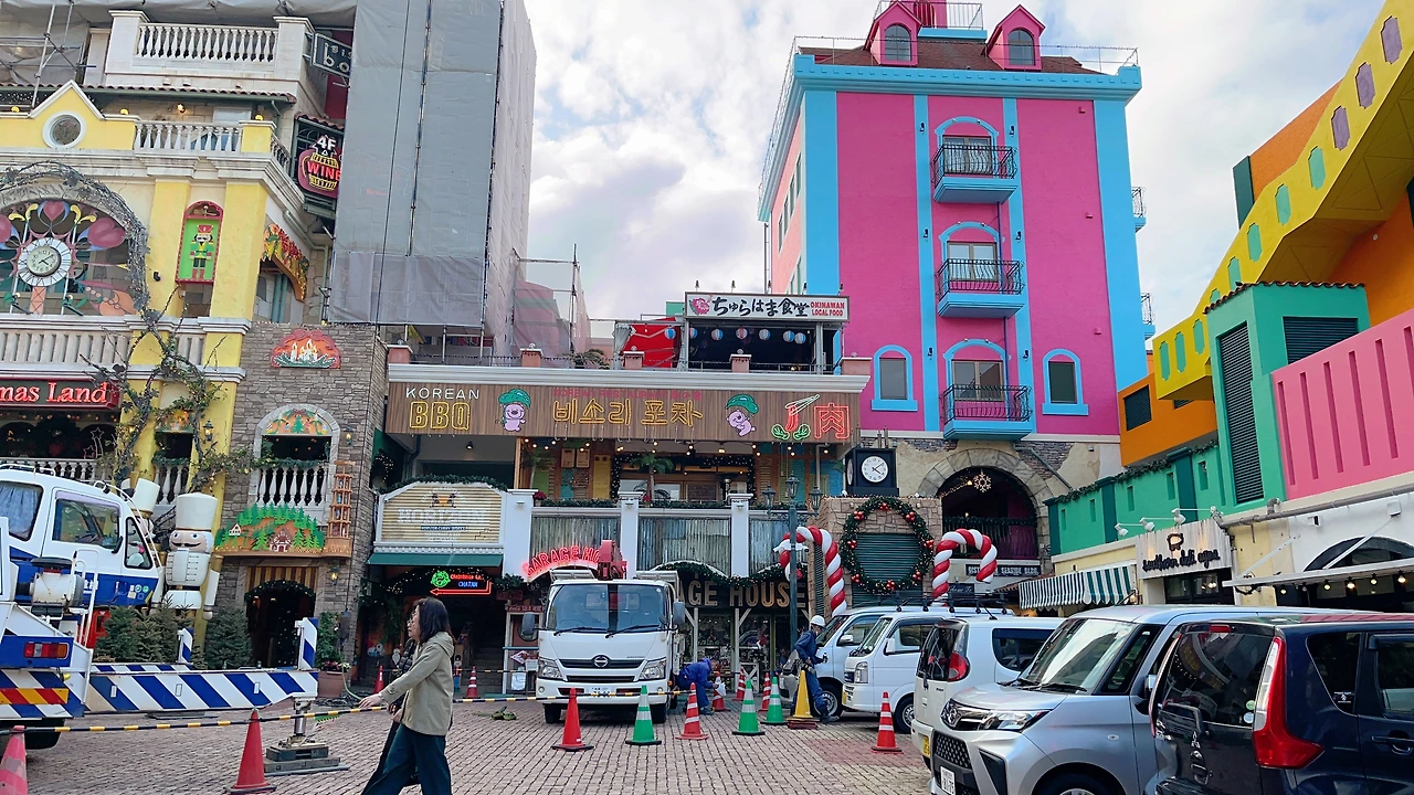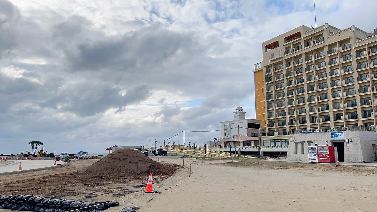 그렇게 아메빌을 슥슥 둘러보고 다시 선셋비치 쪽으로 향했다. 그러니까 2019년에 오키나와 여행으로 혼자 이곳에 여행 왔을 때, 노을을 봤던 그쪽으로 갔다. 지금은 겨울이라 그런지 마침 백사장을 파내고(?) 공사를 하고 있어서 더 이상 평화로운 비치가 아니었다. 공사장 느낌 팍팍.