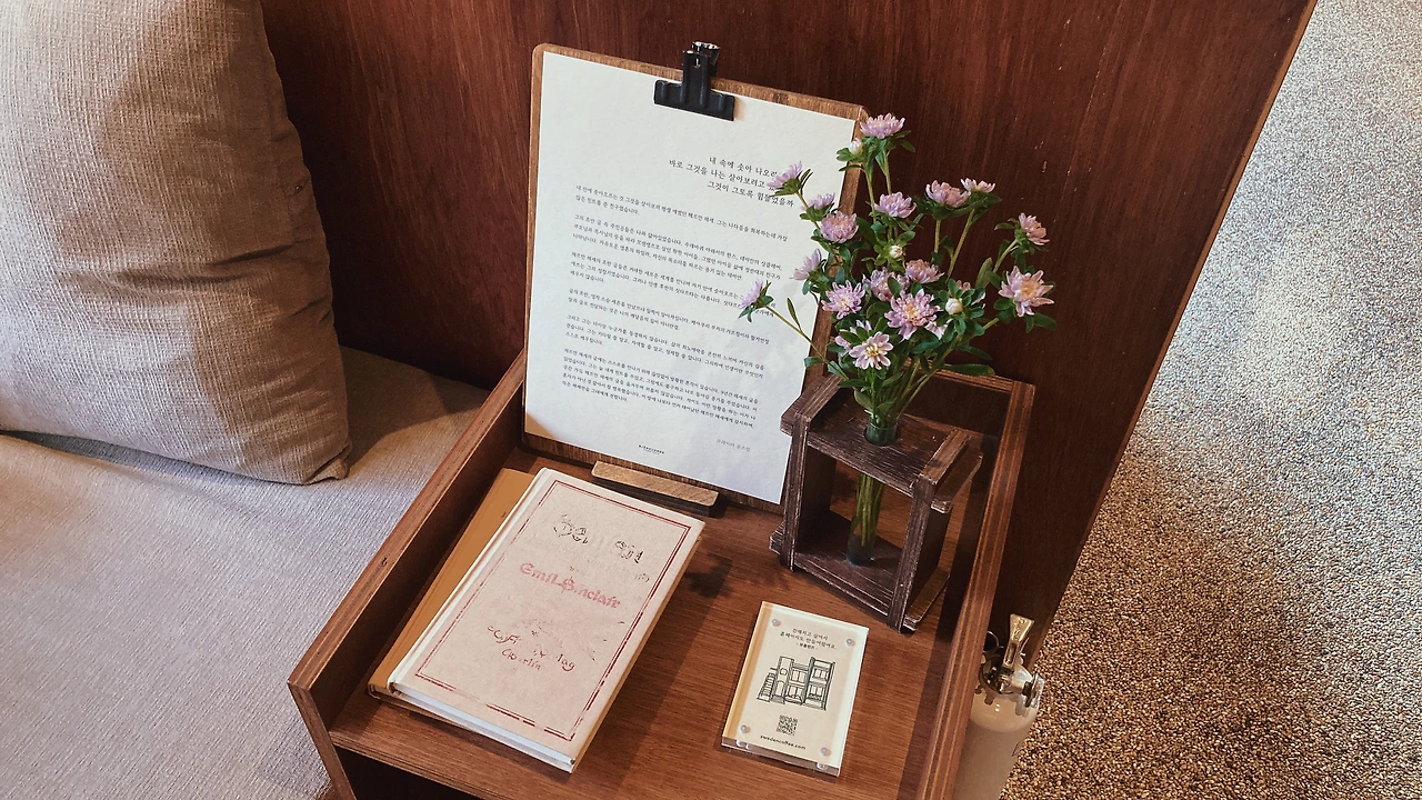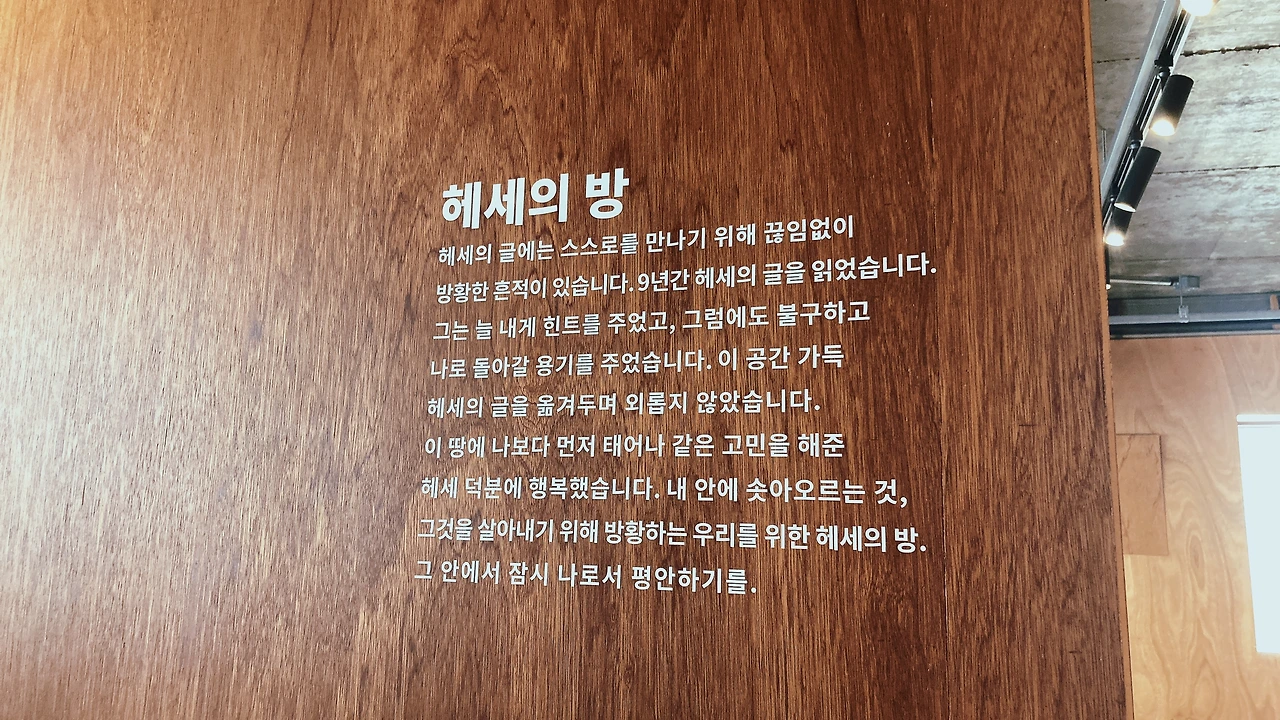 안쪽엔 헤세의 방이 있었다. 얼마 전에 헤세가 쓴 책에 대한 에세이 <헤르만 헤세의 책이라는 세계>를 읽은 기억이 있어서인지 주인장이 왜 이 방을 만들었는지 알 것 같았다. 2층도 있다는데 자리가 있을지 없을지 몰라 일단 1층에 자리를 잡고 음료를 주문하러 갔다.