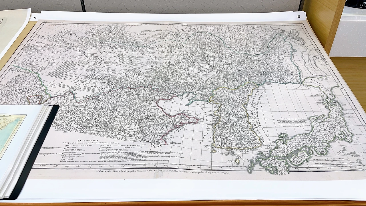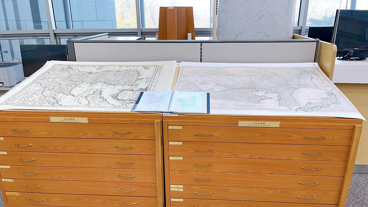 그리고 반대쪽 왼편으로 오니 지도들이 있다. 나는 덕후까진 아니지만 지도를 좋아한다. 고지도인데 아마 독도나 동해 주장할 때 관련이 있겠지. 프랑스에서 만든 지도인지 프랑스어가 적혀 있어서 놀랐다. 내가 프랑스어를 좀 더 잘해서 여기 쓰여있는 것들을 스스로 이해하면 좋았을 텐데, 하는 아쉬움이 들었다.
