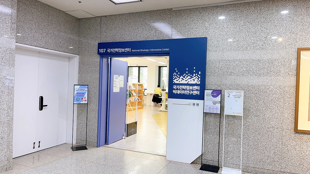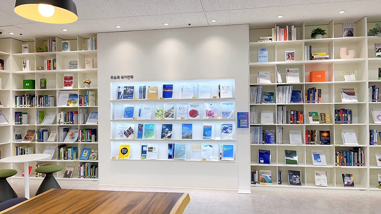 메뉴는 딱 하나였다. 그래도 맛있게 잘 먹고 본격 도서관 탐방을 시작한다. 1층 로비 한 바퀴 쓱 둘러보고 2층 올라가려다 빅데이터 어쩌고 발견해서 들어가 봤다. 컴퓨터가 있는 자리나 연구자들을 위한 자리는 예약을 해야 했지만 그 외 자료들은 열람이 가능했다. 각 나라들에서 발간한 보고서들이나 연구에 활용할 법한 책들이 많이 모아져 있었다.