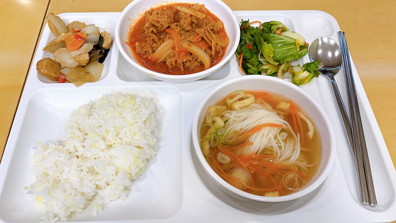 미리 식단표까지 보고 갔는데 먹고 싶은 메뉴는 다른 건물에 있었다. 하지만 건물 출입이 용이하지 않을 것 같았고 건물 위치도 잘 몰라서 까딱하면 점심시간 놓치기 십상일 듯해서 일반인들이 가장 많이 방문할 무난한 도서관 건물 구내식당으로 결정했다.