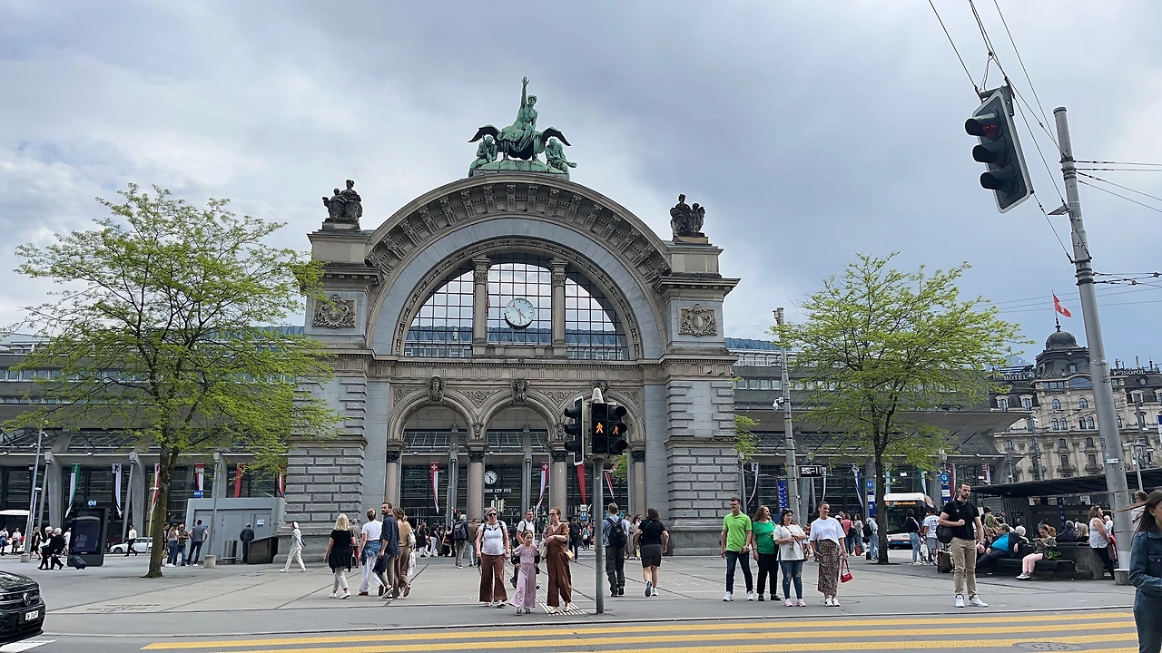 정차역이 가까워졌는지 사람들이 부시덕거리는 소리에 깼다. 창 밖에는 그야말로 누가 봐도 '나 이제 스위스야~' 하는 풍경이 펼쳐졌다. 여태까지는 들판과 토스카나 지방 특유의 기다란 이등변 삼각형 모양의 나무들이 죽 늘어서 있는 풍경만 봤었다. 그런 건 온데간데없고 갑자기 높다란 산에 둘러 쌓이고 산 정상에는 눈이 보인다. 아아, 스위스구나. 기차 안에서 여기가 바로 스위스라는 걸 눈치채게 될 줄은 몰랐어.