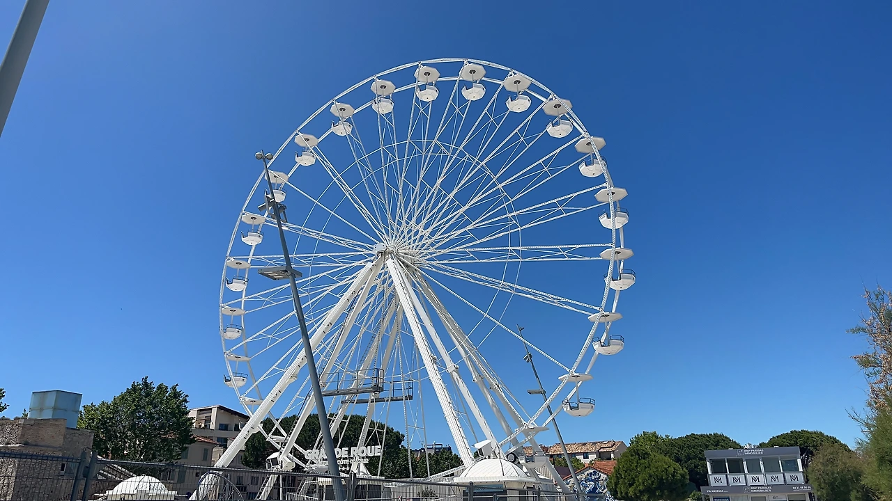 기차 타고 이동하는데 구글맵으로 피카소 미술관 정보를 곧 영업종료 한다는 메시지가 뜬다. 자세히 보니까 미술관이 점심시간엔 문을 닫는다. 그런 고로 내가 아무리 빨리 간들 입장 가능한 건 2시부터란 말씀. 중간에 비는 한 시간은 그냥 산책하게 생겼다. 해가 길어서 내가 참는다 참아. (안 참으면 어쩔 건데?) 그래서 미술관 근처에 관람차가 있길래 그거 볼 겸 와서 의자도 있고 있길래 휴식을 취하기로 했다.