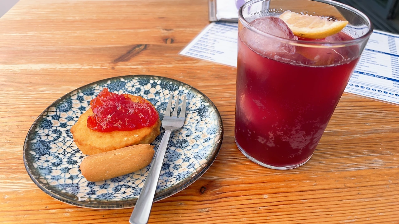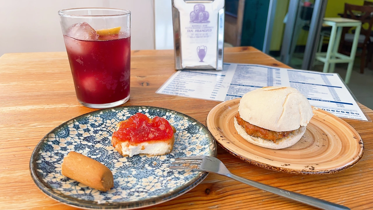 왔던 길로 되돌아가야 했지만 심지어 메인로드에서 벗어난 곳인데 여기도 벌써 사람들이 많이 앉아 있었다. 눈치껏 혼자 밖에 있는 자리에 앉아서 서버하고 눈이 마주치자마자 미리 본 메뉴로 후다닥 시켰다. 타파스를 2개 시킬까 3개 시킬까 고민했는데 좀 모자라게 시키는 게 좋을 거 같아 두 개 시키고 마실 걸로는 역시 띤또 데 베라노를 시켰다. 1일 1띤또 하는 중.